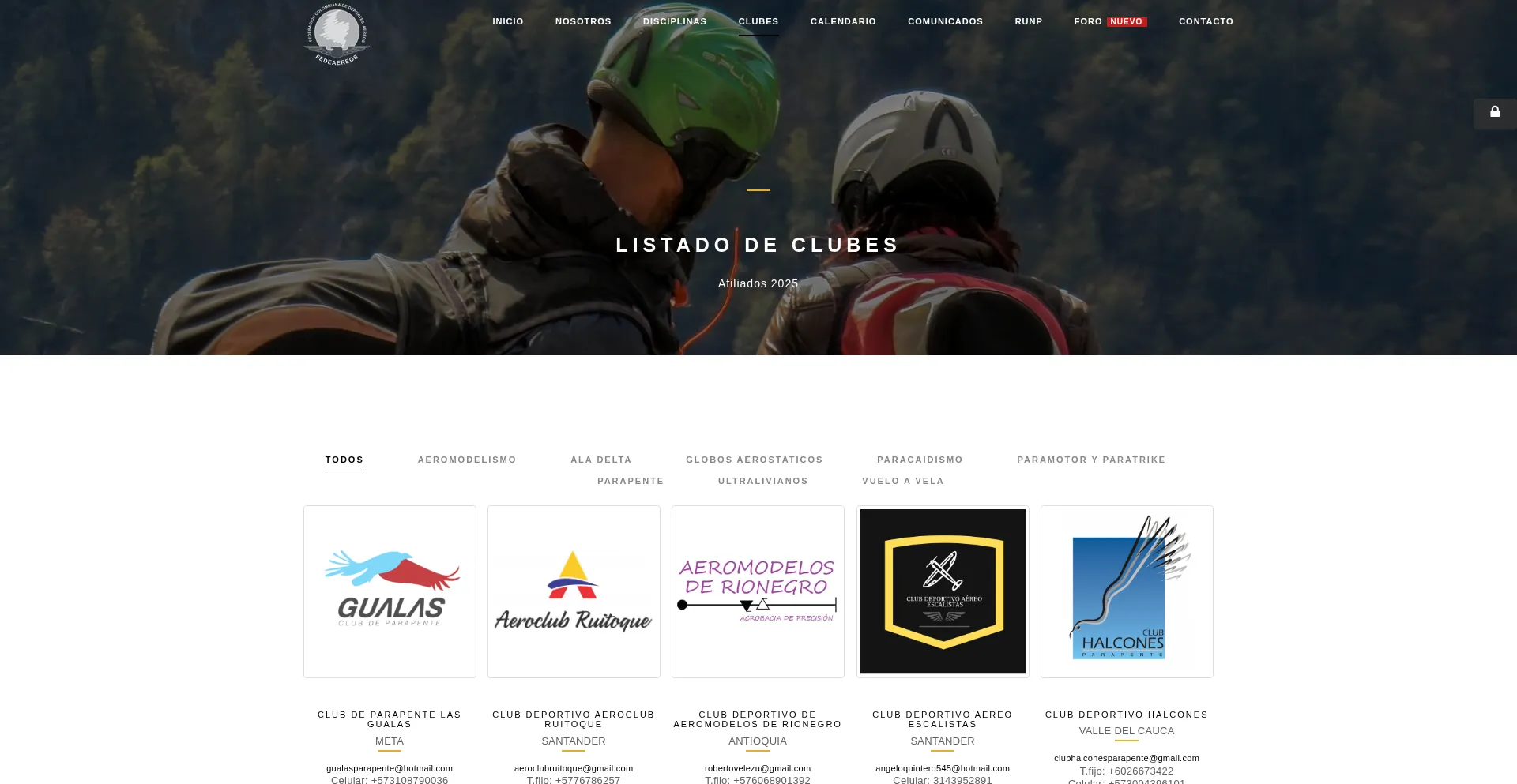 Listado de clubes afiliados a FEDEAEREOS
