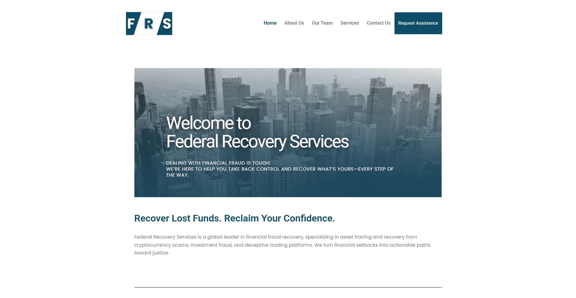 The website federalrecoveryservices.com advertises fund recovery services for lost or stolen assets. While some operate on contingency fee structures, others may require upfront payments, which can indicate fraudulent operations. Verify credentials and regulatory compliance before engaging such services.