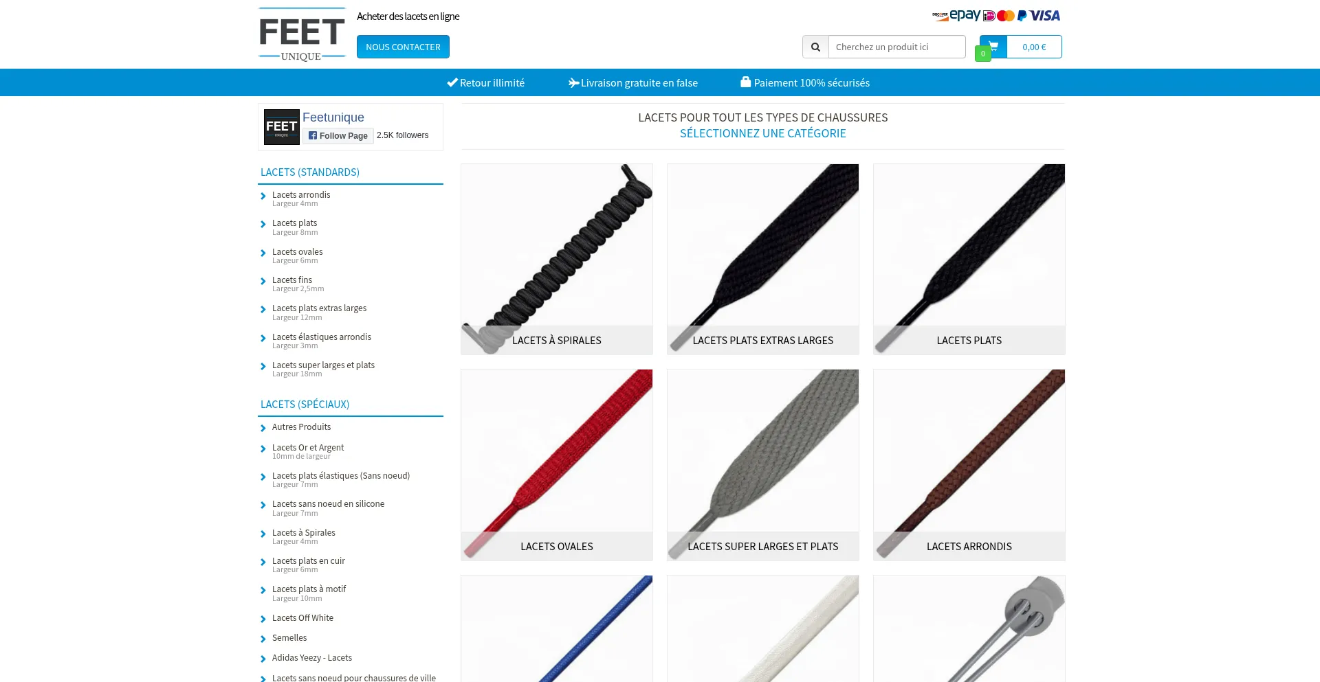 Boutique de lacets avec 50.000+ clients ✓ Boutique 100% lacets avec 200+ types de lacets ✓ Toutes les couleurs ✓ Toutes les tailles : 70-300 cm ✓ Lacets longue durée, n...