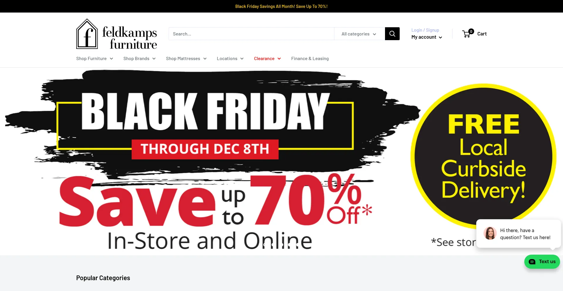 Analysis indicates that feldkampsfurniture.com operates as an e-commerce platform facilitating online transactions for goods or services. The website implements shopping cart functionality, payment processing systems, and product catalog features typical of commercial retail operations.