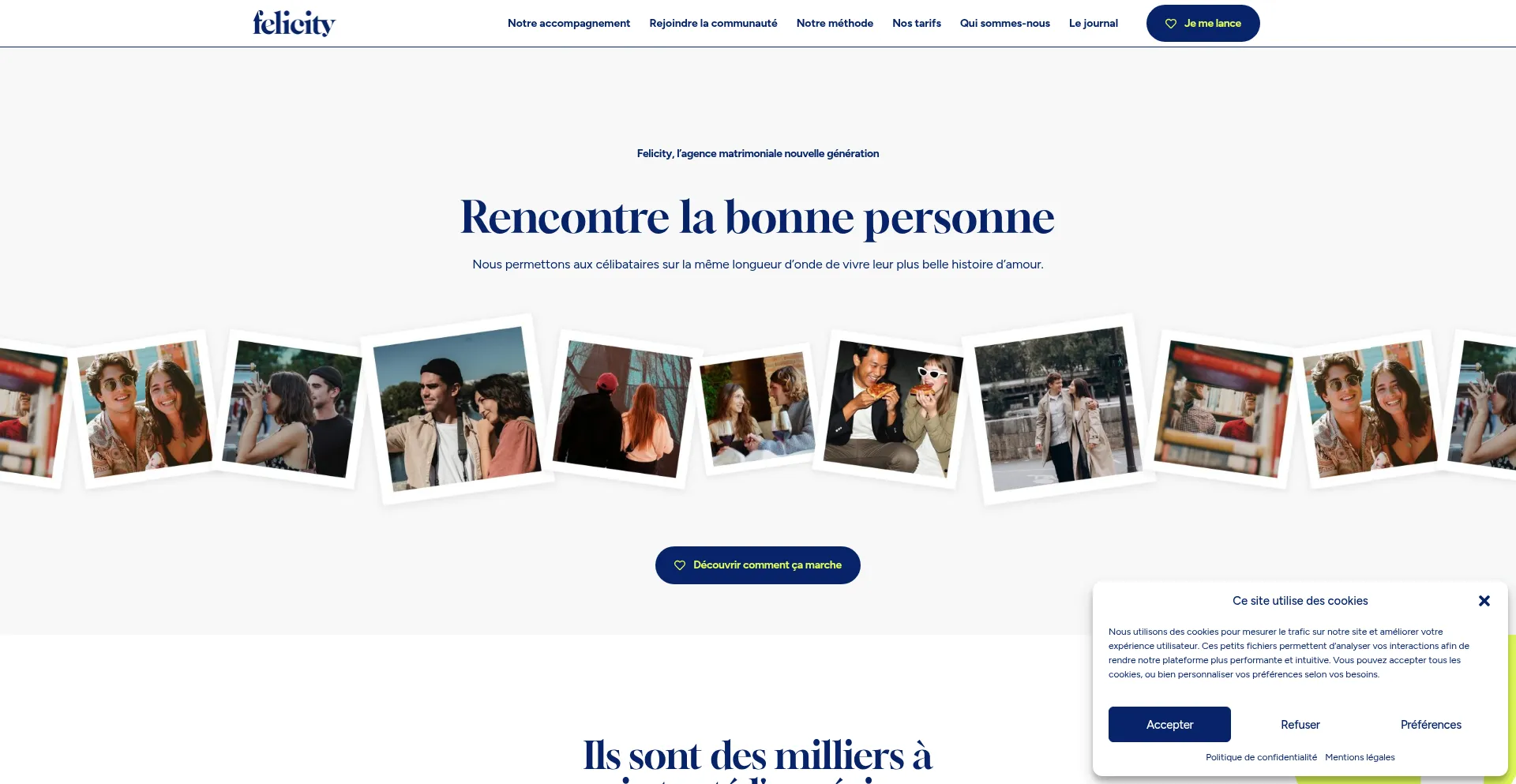 The felicity-dating.fr website employs search engine optimization (SEO) techniques to improve its visibility and ranking in search engine results pages (SERPs).