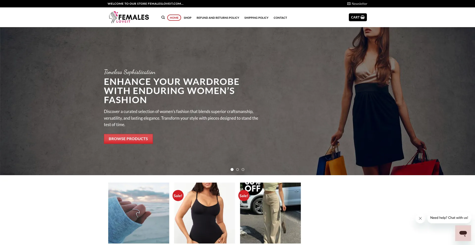 Analysis indicates that femalesloveit.com operates as an e-commerce platform facilitating online transactions for goods or services. The website implements shopping cart functionality, payment processing systems, and product catalog features typical of commercial retail operations.