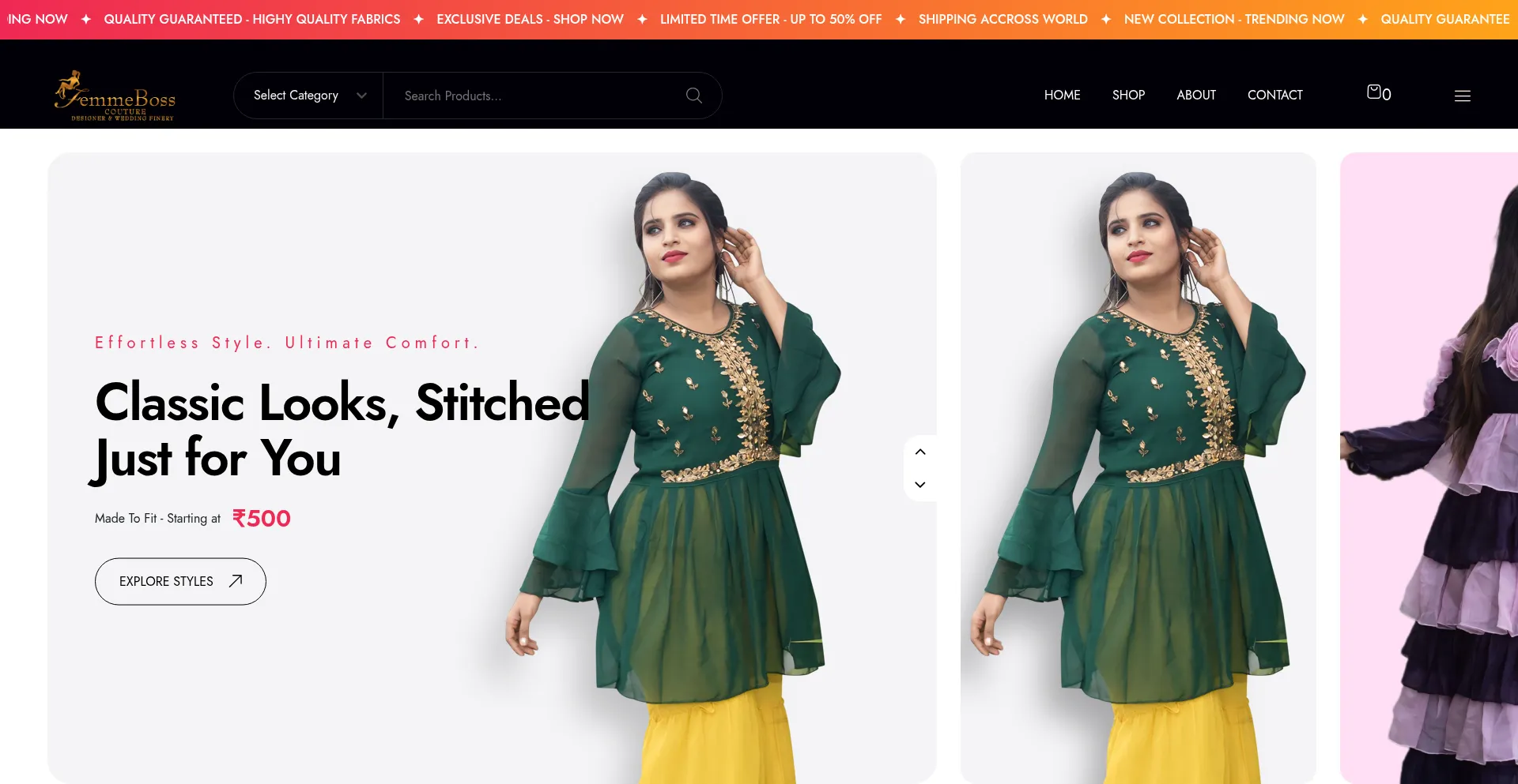 femmeboss.in uses Bootstrap, a widely-adopted open-source framework for responsive web development. Bootstrap enables efficient creation of mobile-friendly interfaces through standardized components and styling.
