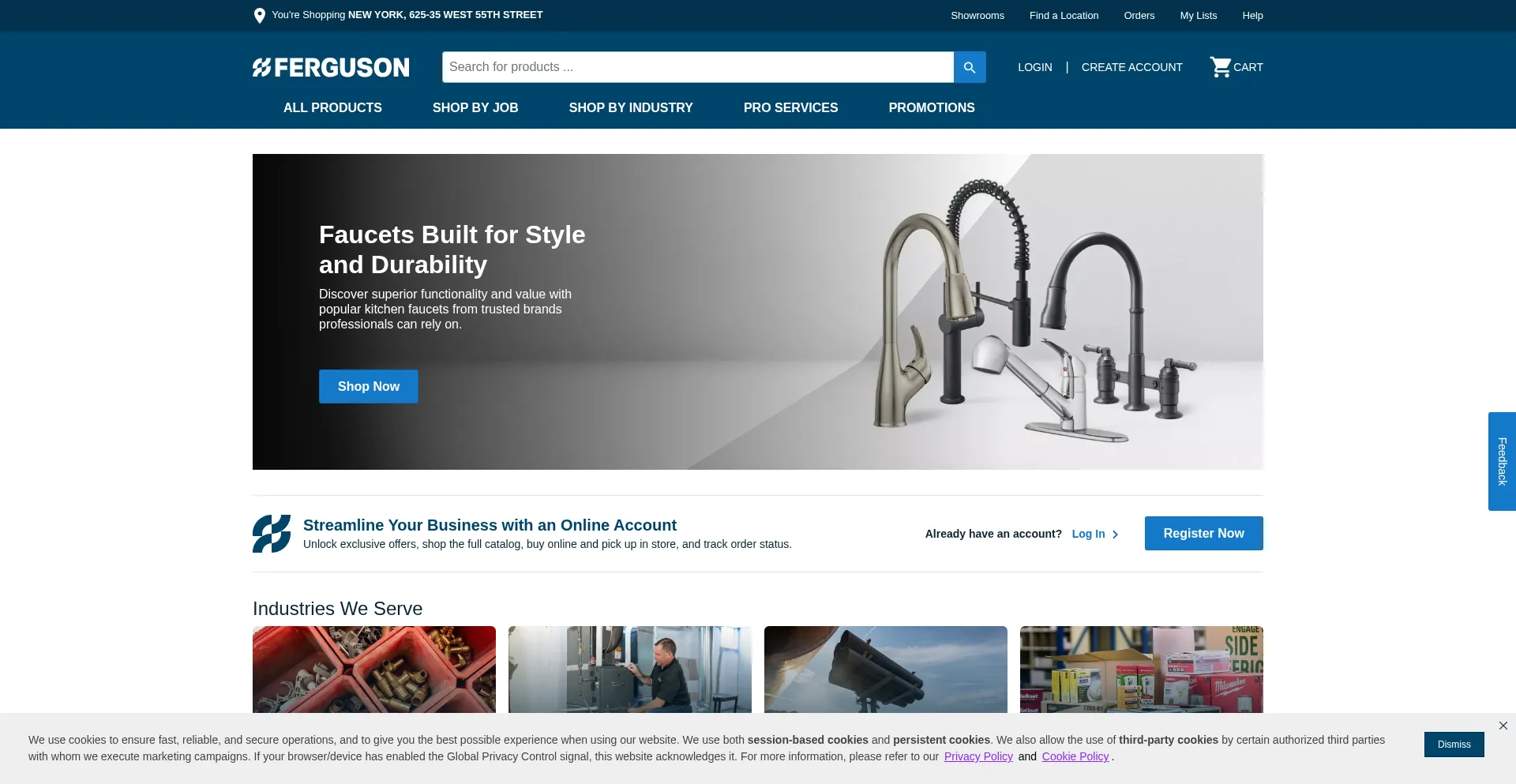 The website implements cookie consent mechanisms in compliance with privacy regulations such as GDPR or CCPA. This demonstrates that ferguson.com adheres to data protection standards and provides users with control over personal data collection practices.