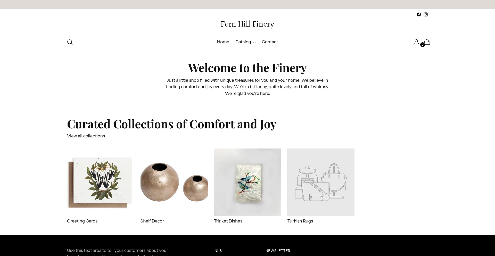 Analysis indicates that fernhillfinery.com operates as an e-commerce platform facilitating online transactions for goods or services. The website implements shopping cart functionality, payment processing systems, and product catalog features typical of commercial retail operations.