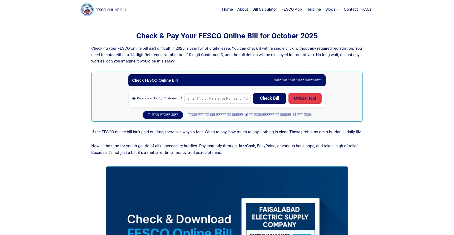Enter your reference number to check your FESCO Online Bill instantly. View, download, or print your duplicate electricity bill free. Check it now in seconds