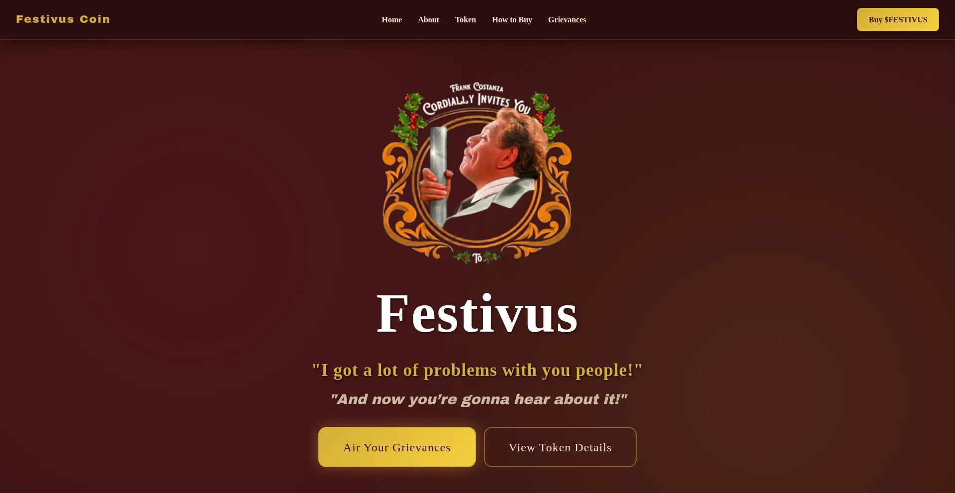Festivus - The memecoin for the rest of us! Air your grievances and celebrate Festivus!