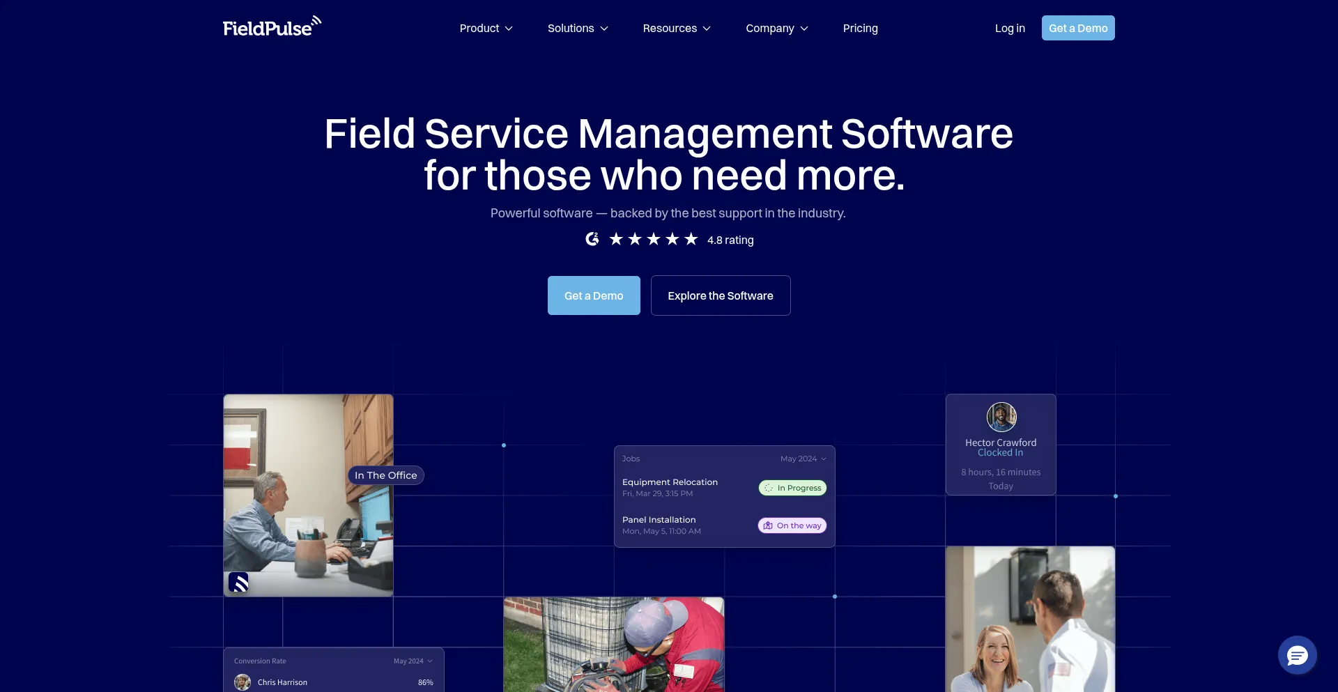 The fieldpulse.com website offers a mobile application for Android devices, indicating expanded platform presence beyond web-based services.