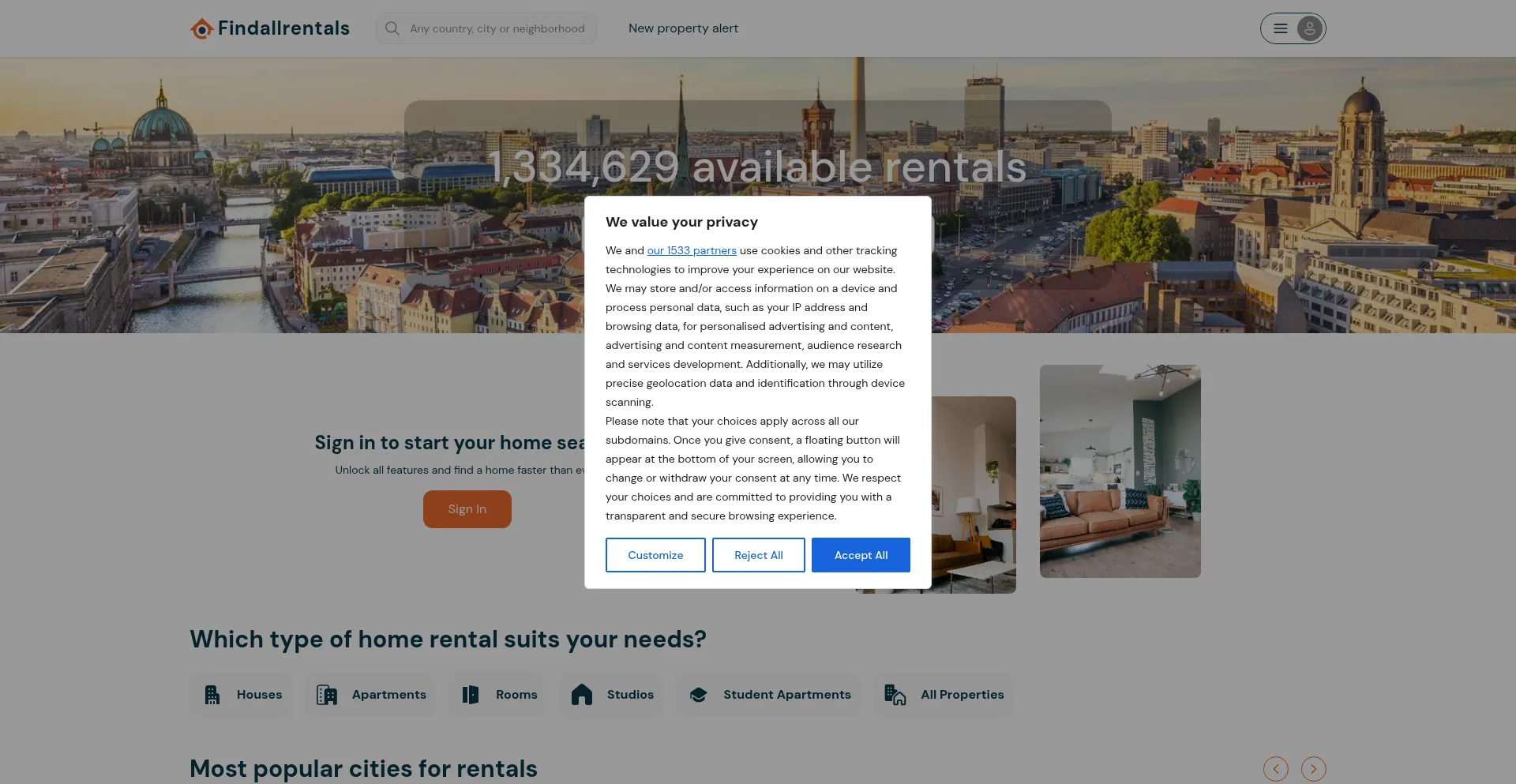 The website implements cookie consent mechanisms in compliance with privacy regulations such as GDPR or CCPA. This demonstrates that findallrentals.com adheres to data protection standards and provides users with control over personal data collection practices.