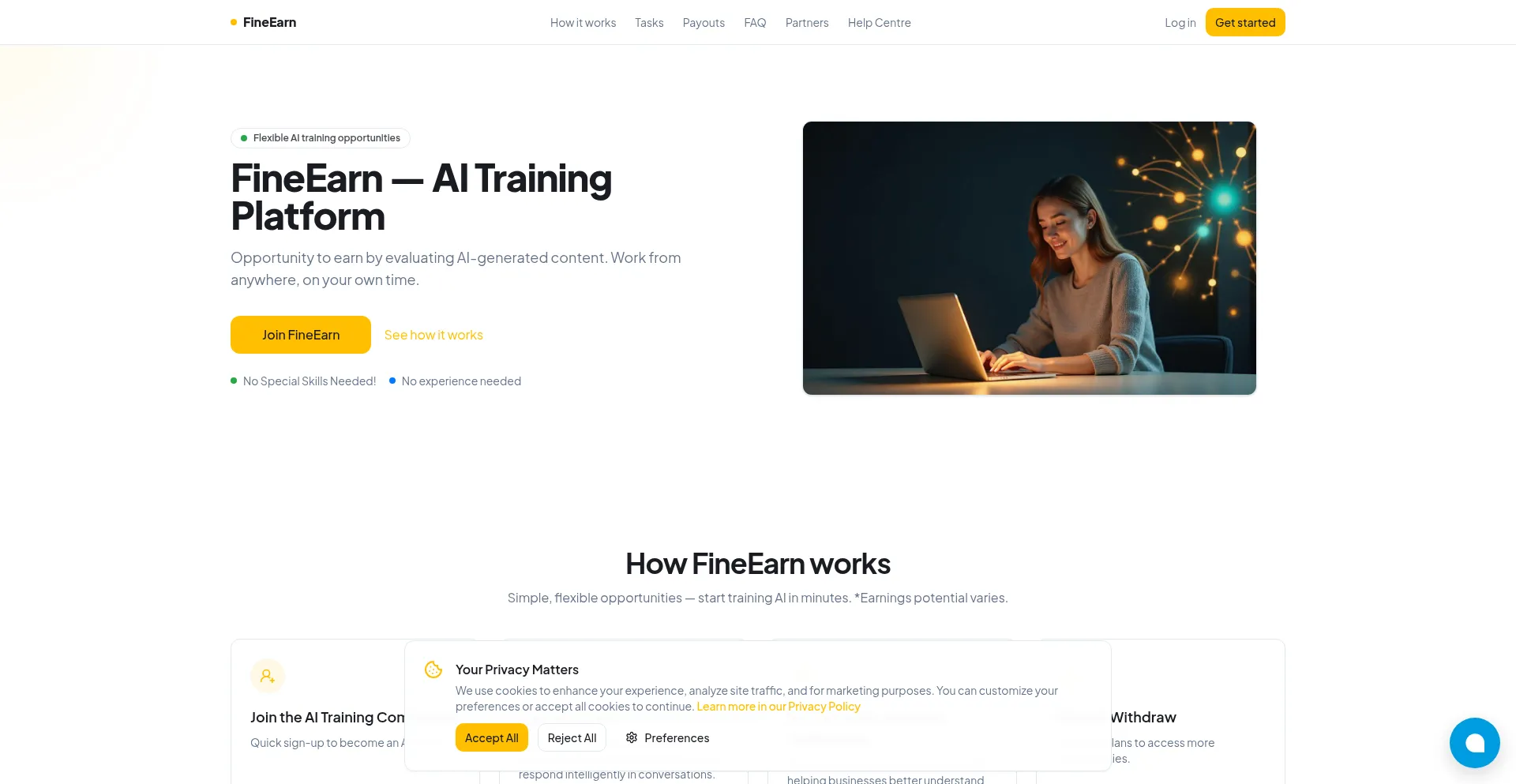 The website implements cookie consent mechanisms in compliance with privacy regulations such as GDPR or CCPA. This demonstrates that fineearn.com adheres to data protection standards and provides users with control over personal data collection practices.