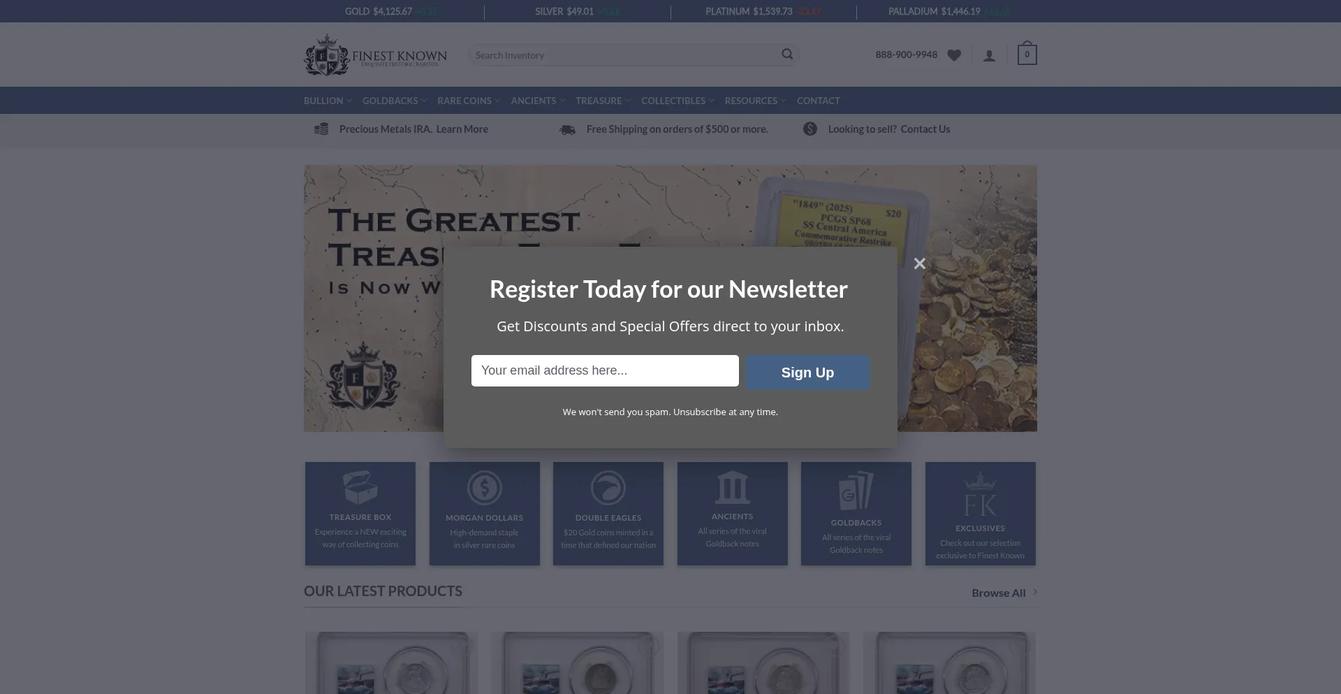 Finest Known, America’s leading rare coin dealer, offers exquisite rare coins, ancient coinage, shipwreck treasure, currency, and artifacts for sale online.