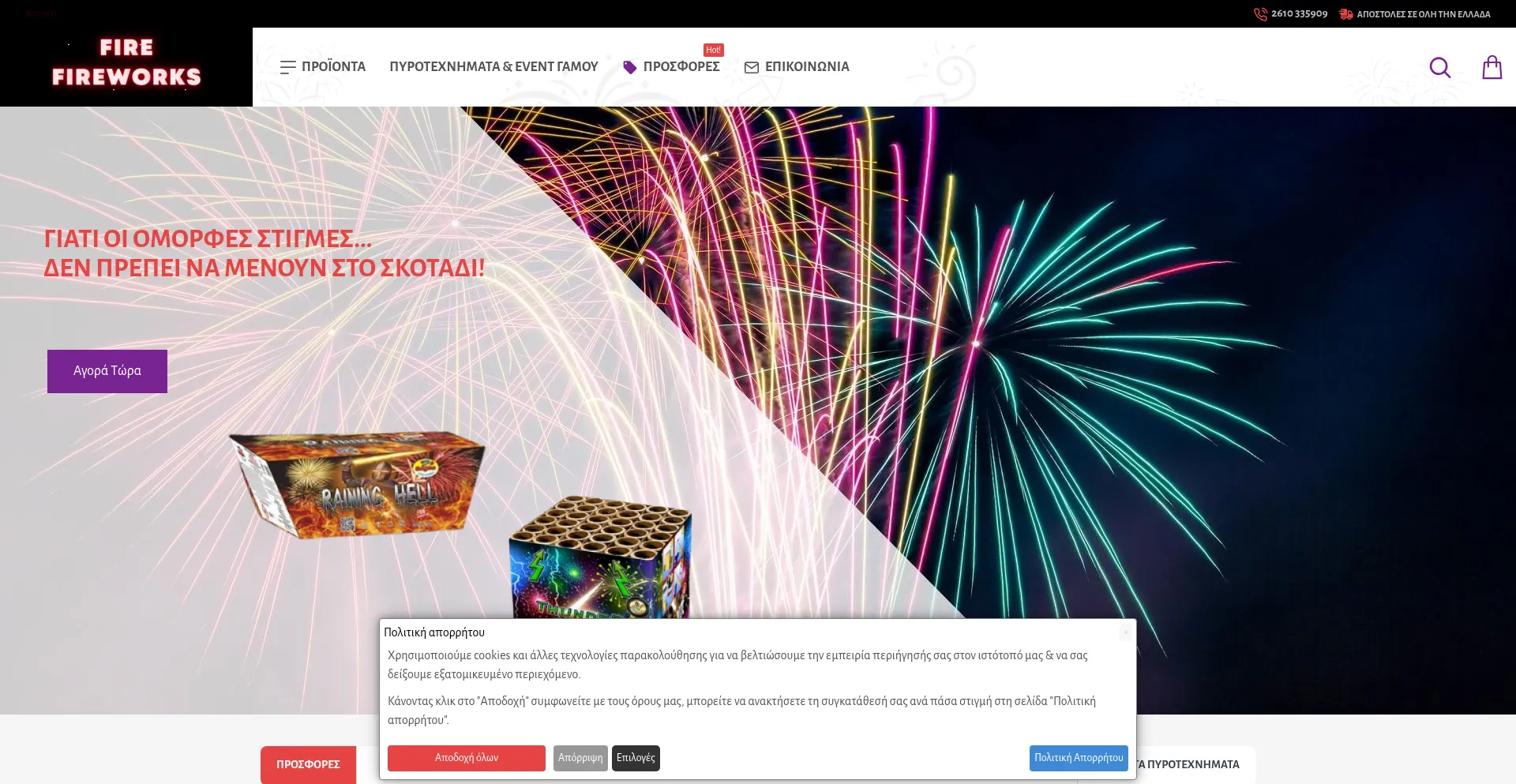 Στο Fire-Fireworks θα βρείτε: Πυροτεχνήματα, εναέριες βολές, δυναμιτάκια, παιδικά πυροτεχνήματα, πυροτε...
