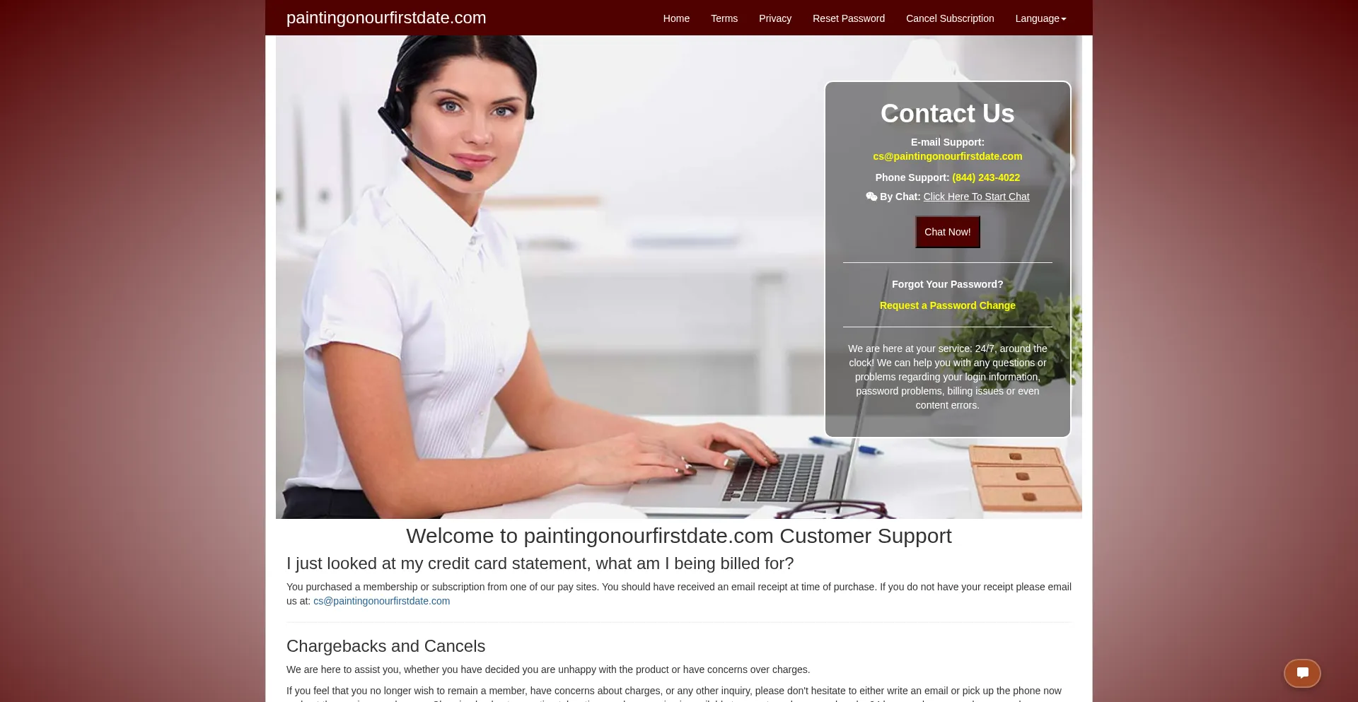 The website contains dedicated sections addressing payment disputes, subscription management, chargeback procedures, refund policies, and other financial transaction concerns, indicating established billing operations.