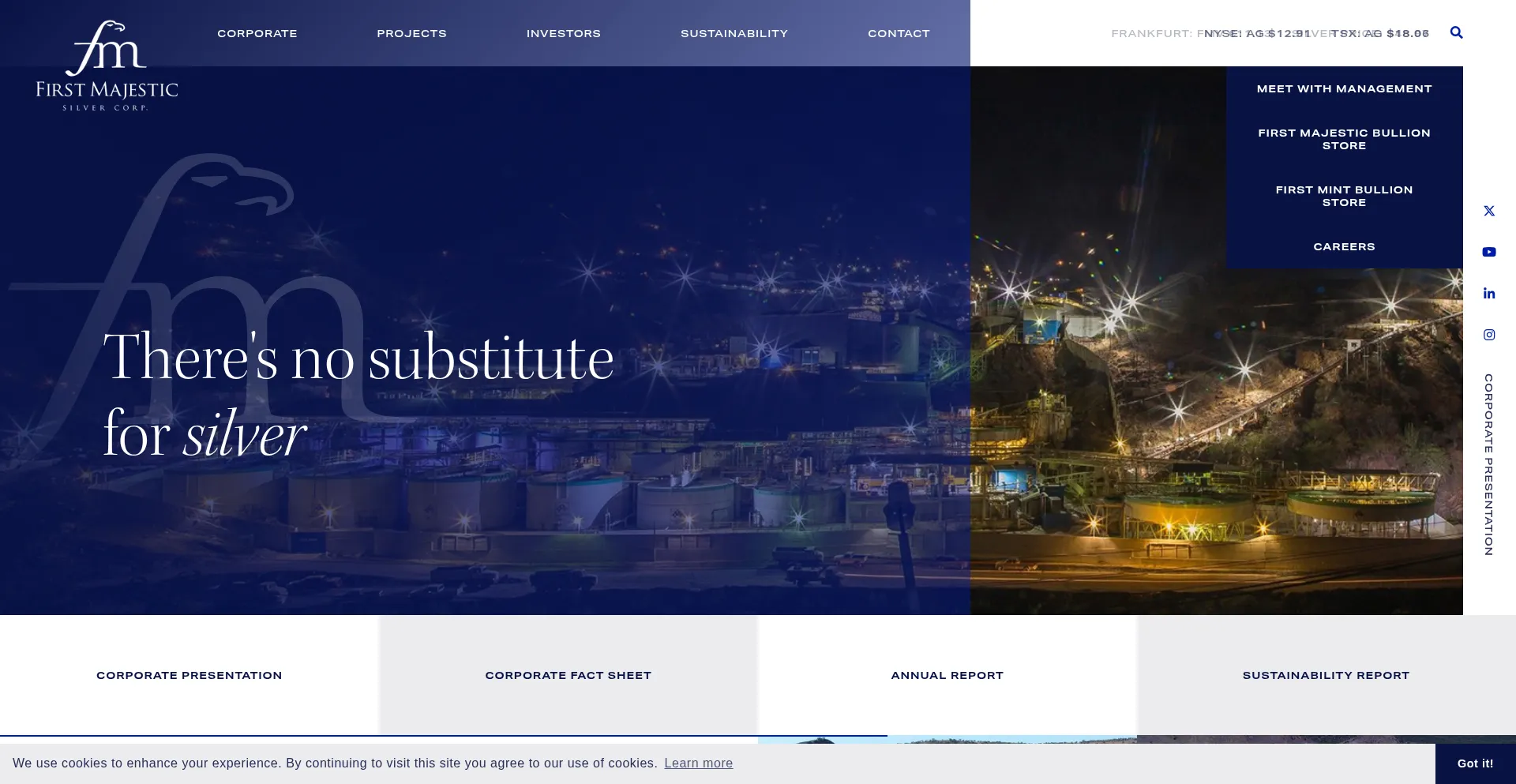 The website implements cookie consent mechanisms in compliance with privacy regulations such as GDPR or CCPA. This demonstrates that firstmajestic.com adheres to data protection standards and provides users with control over personal data collection practices.
