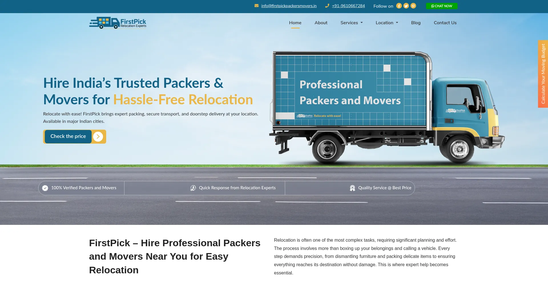 Firstpickpackersmovers.in Website Review