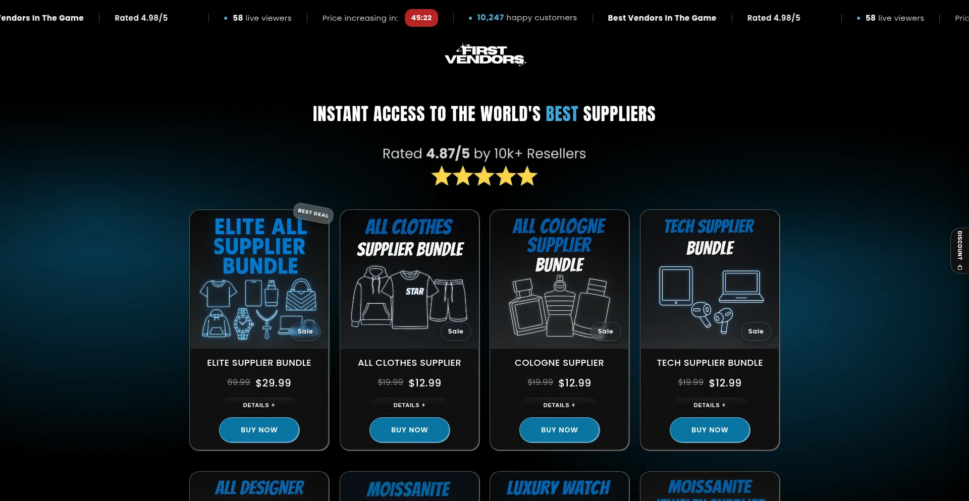 The website leverages popular product names and brands to attract traffic and generate user interest. These products may be offered through promotional campaigns or discount strategies designed to increase visitor engagement and conversion rates for firstvendors.net.