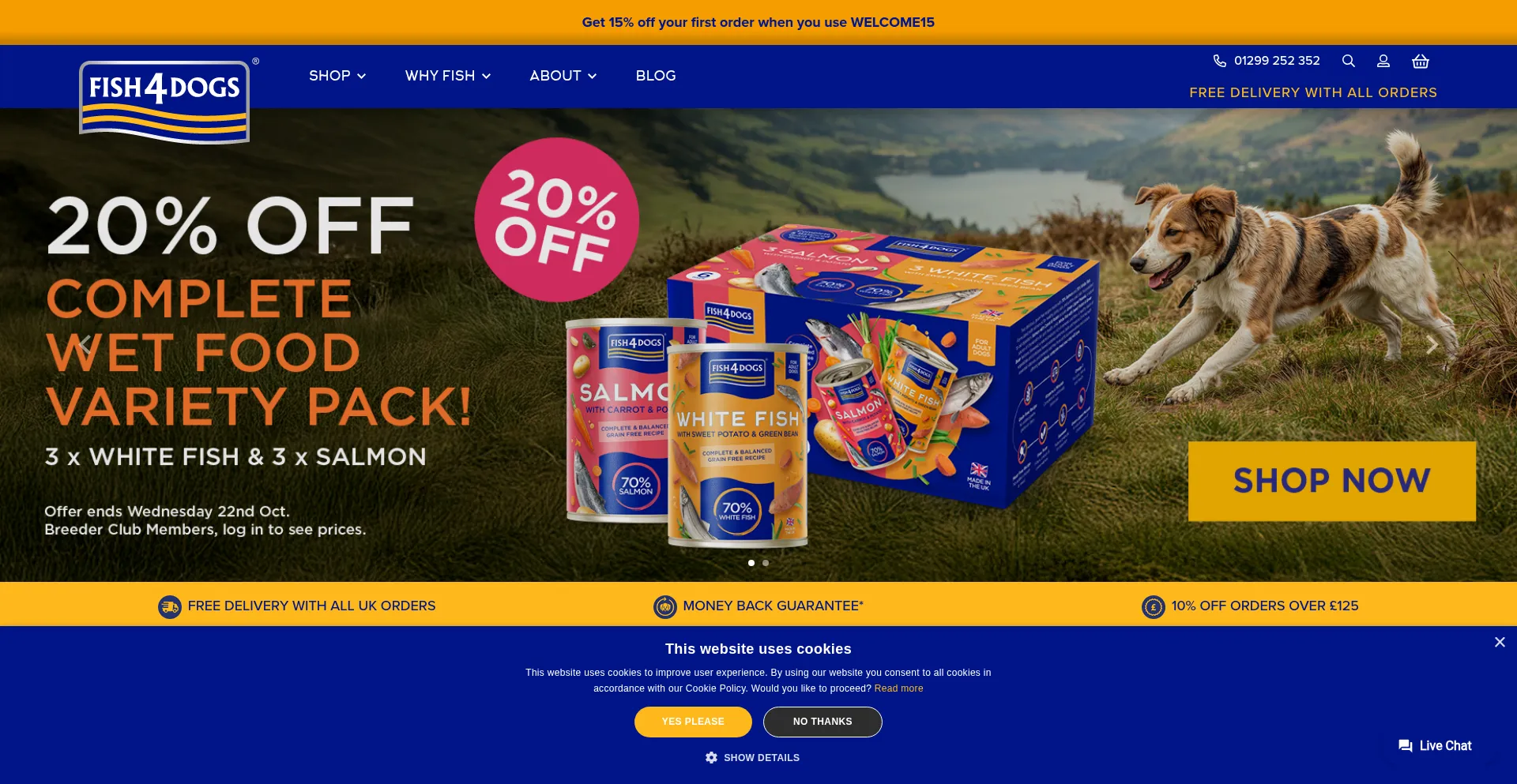 The website implements cookie consent mechanisms in compliance with privacy regulations such as GDPR or CCPA. This demonstrates that fish4dogs.com adheres to data protection standards and provides users with control over personal data collection practices.