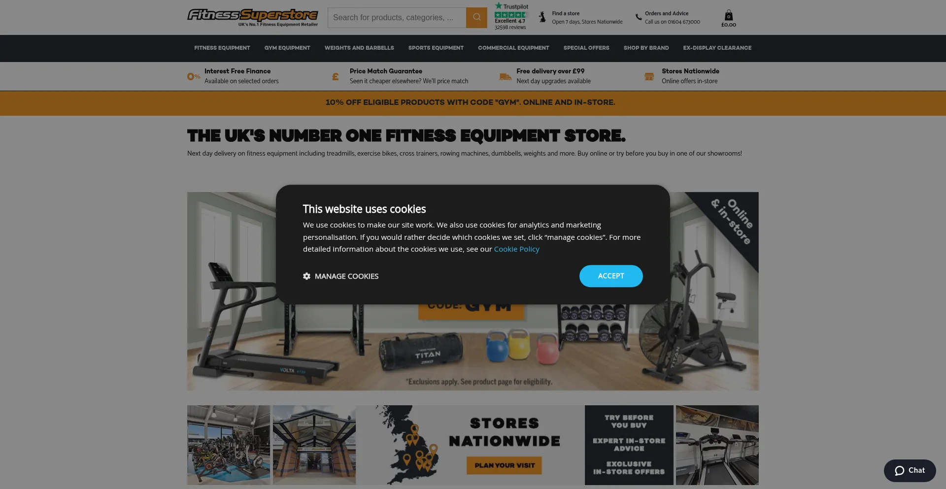 The website implements cookie consent mechanisms in compliance with privacy regulations such as GDPR or CCPA. This demonstrates that fitness-superstore.co.uk adheres to data protection standards and provides users with control over personal data collection practices.