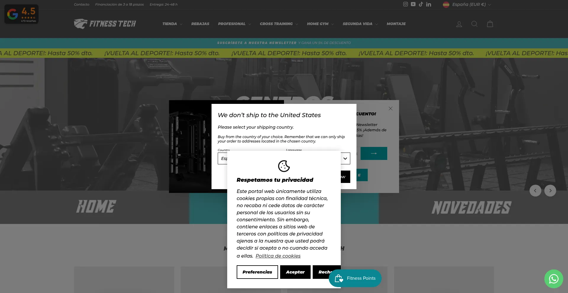 The website implements cookie consent mechanisms in compliance with privacy regulations such as GDPR or CCPA. This demonstrates that fitnesstech.es adheres to data protection standards and provides users with control over personal data collection practices.