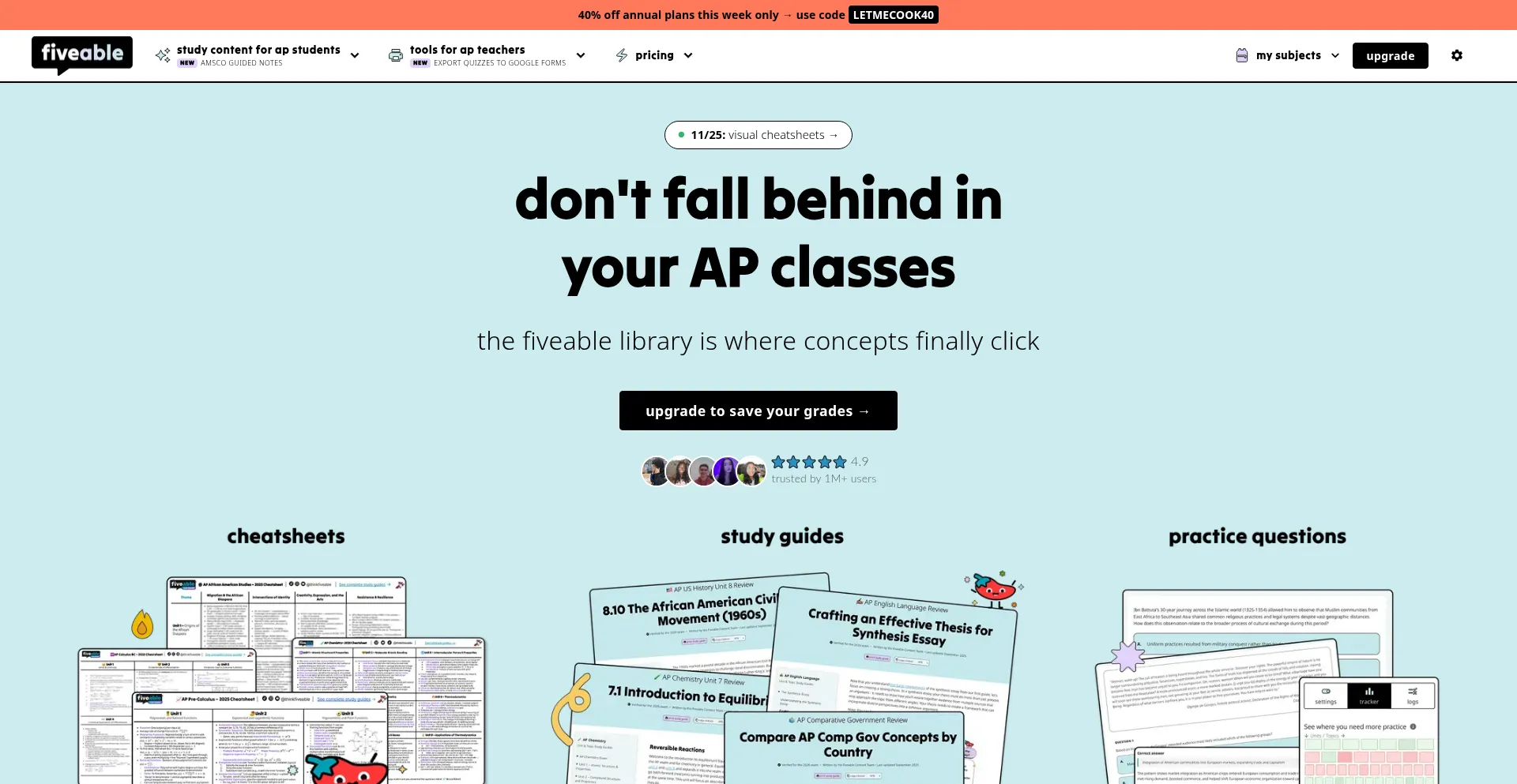 The fiveable.me website uses Google Tag Manager to add and update tracking tags on its website.