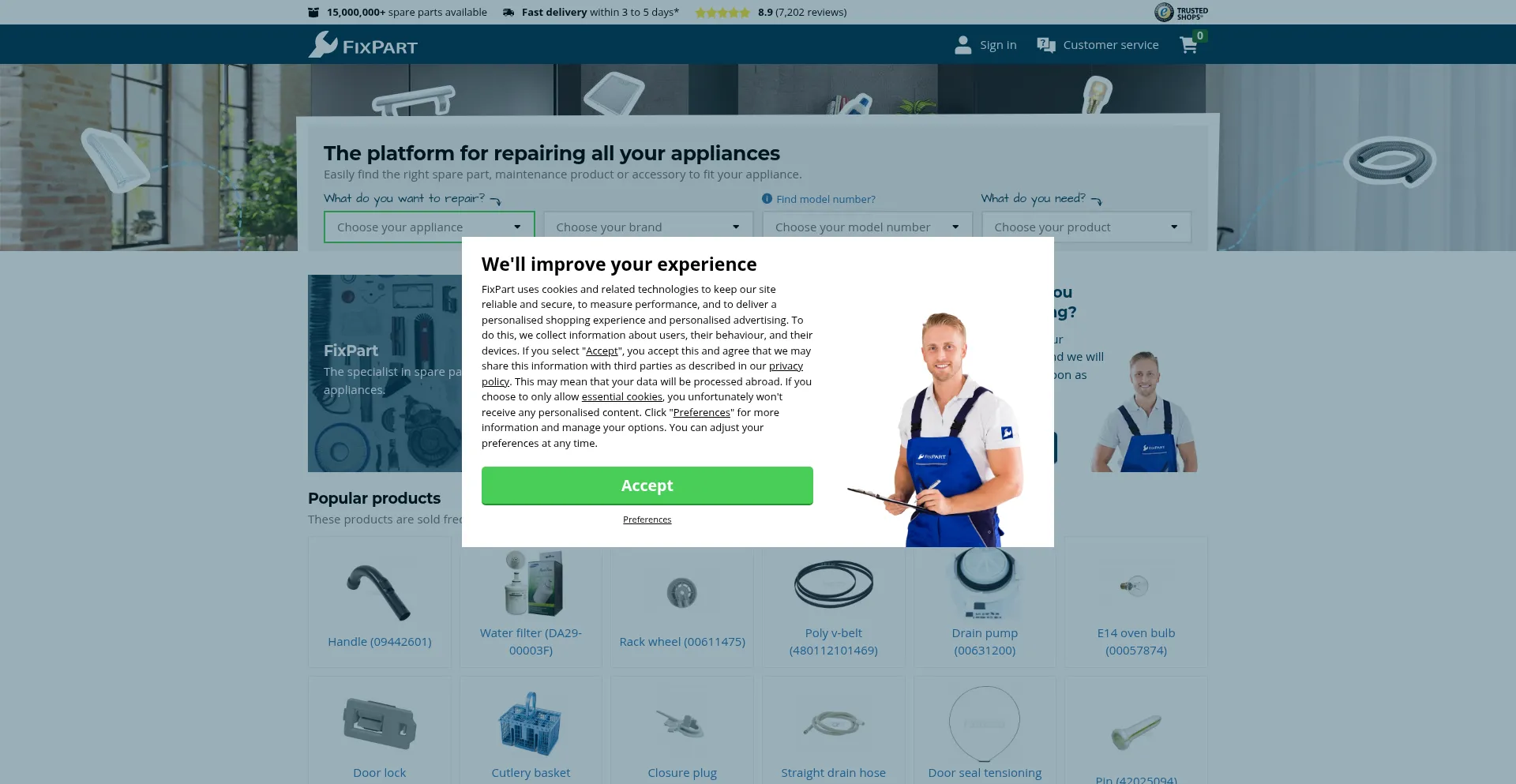 The specialist in spare parts, maintenance products and accessories for all your appliances. Order now for: Dishwasher, Vacuum cleaner, Fridge, Freezer, Washing machine, Microwa...
