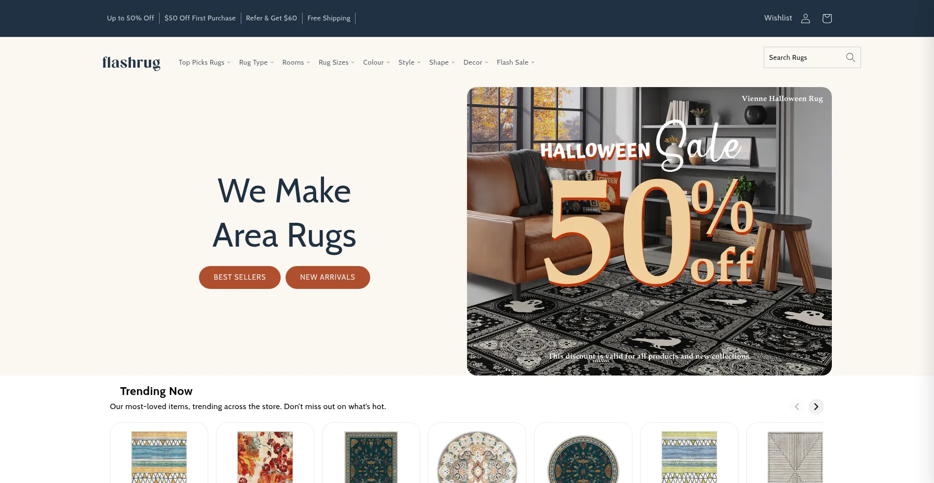 Our analyzer determines that website flashrug.com is using Shopify CMS. Shopify is a popular e-commerce platform, powering around 4.4% of websites globally.
