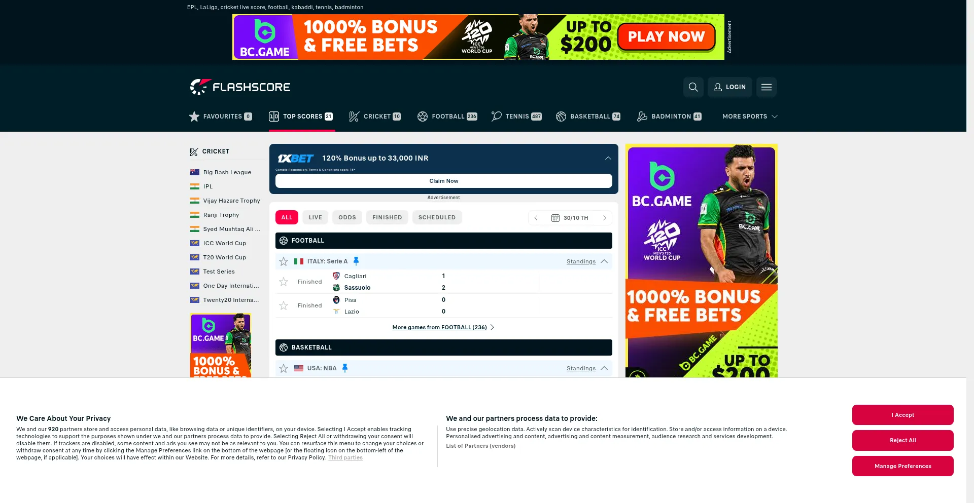 The website implements cookie consent mechanisms in compliance with privacy regulations such as GDPR or CCPA. This demonstrates that flashscore.in adheres to data protection standards and provides users with control over personal data collection practices.