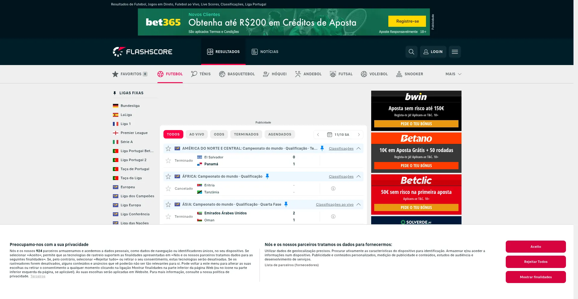 The website implements cookie consent mechanisms in compliance with privacy regulations such as GDPR or CCPA. This demonstrates that flashscore.pt adheres to data protection standards and provides users with control over personal data collection practices.