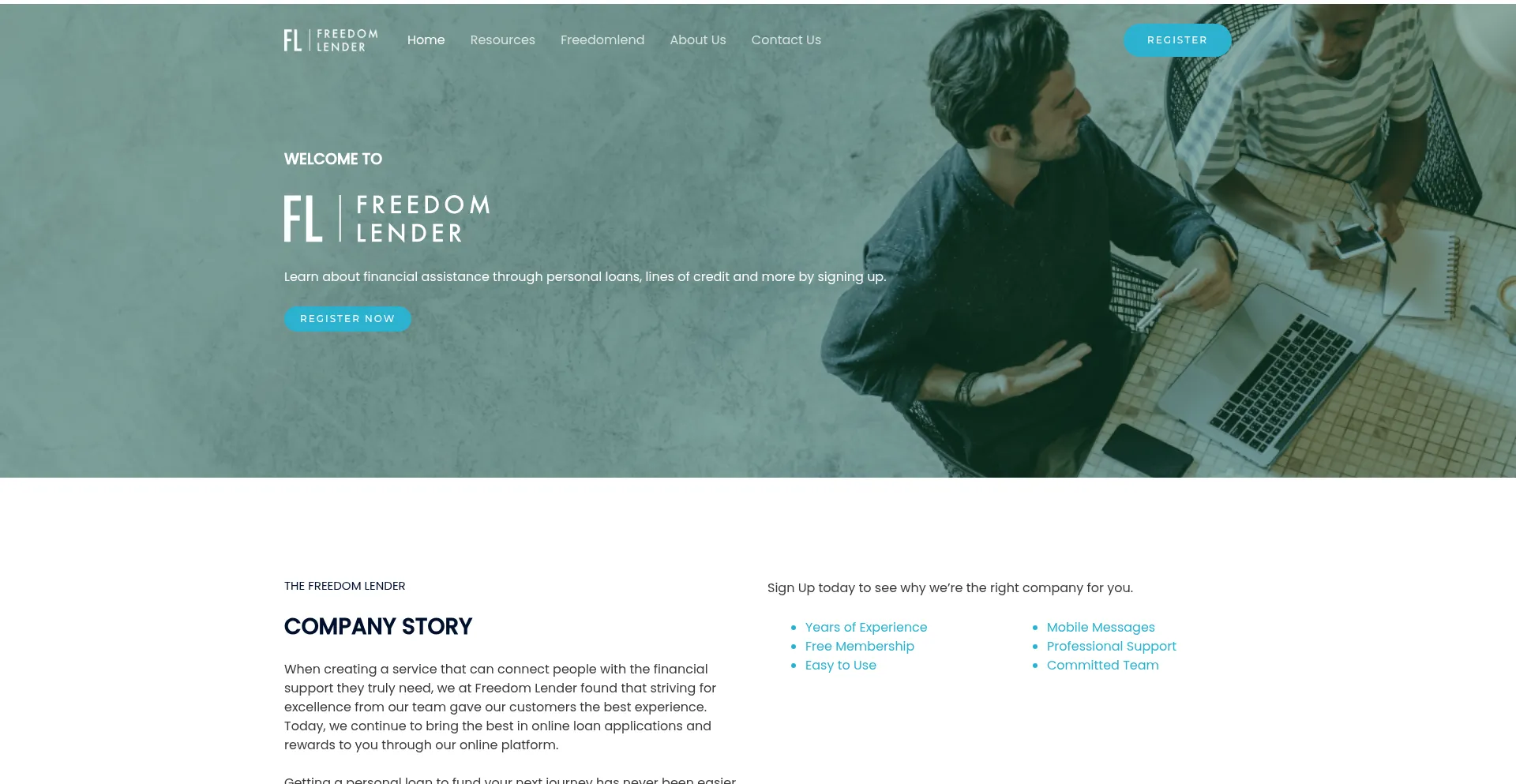 WELCOME TO Learn about financial assistance through personal loans, lines of credit and more by signing up. register now THE freedom lender company story When creating a service...