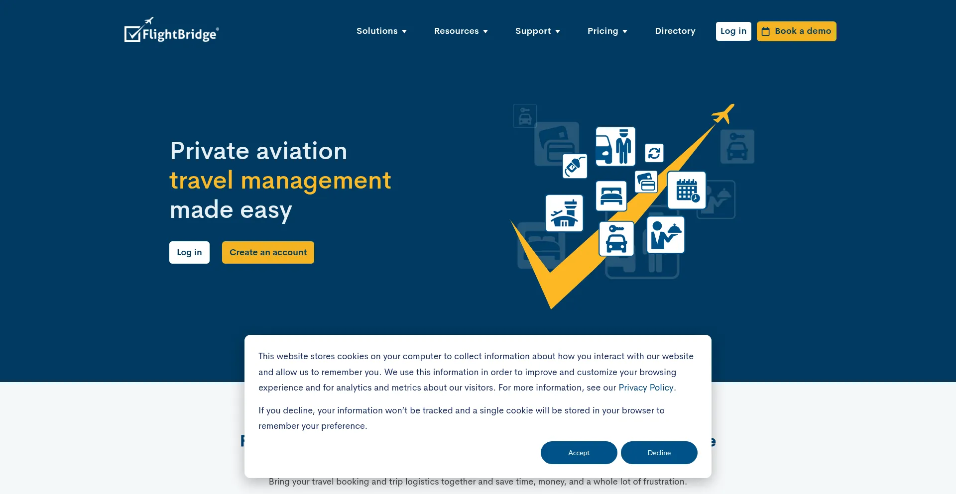 FlightBridge is private aviation’s all-in-one trip logistics platform. Manage FBO service requests, and book and manage hotels, rental cars, commercial flights, and more.