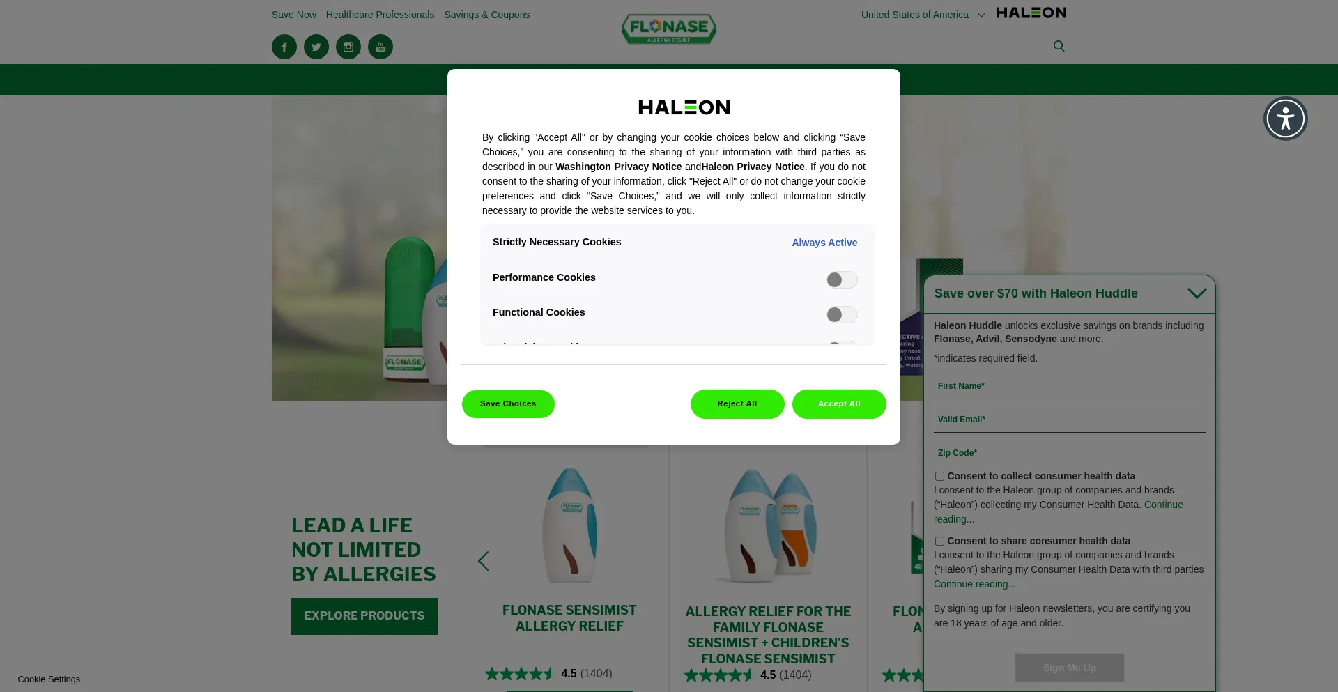 The website implements cookie consent mechanisms in compliance with privacy regulations such as GDPR or CCPA. This demonstrates that flonase.com adheres to data protection standards and provides users with control over personal data collection practices.