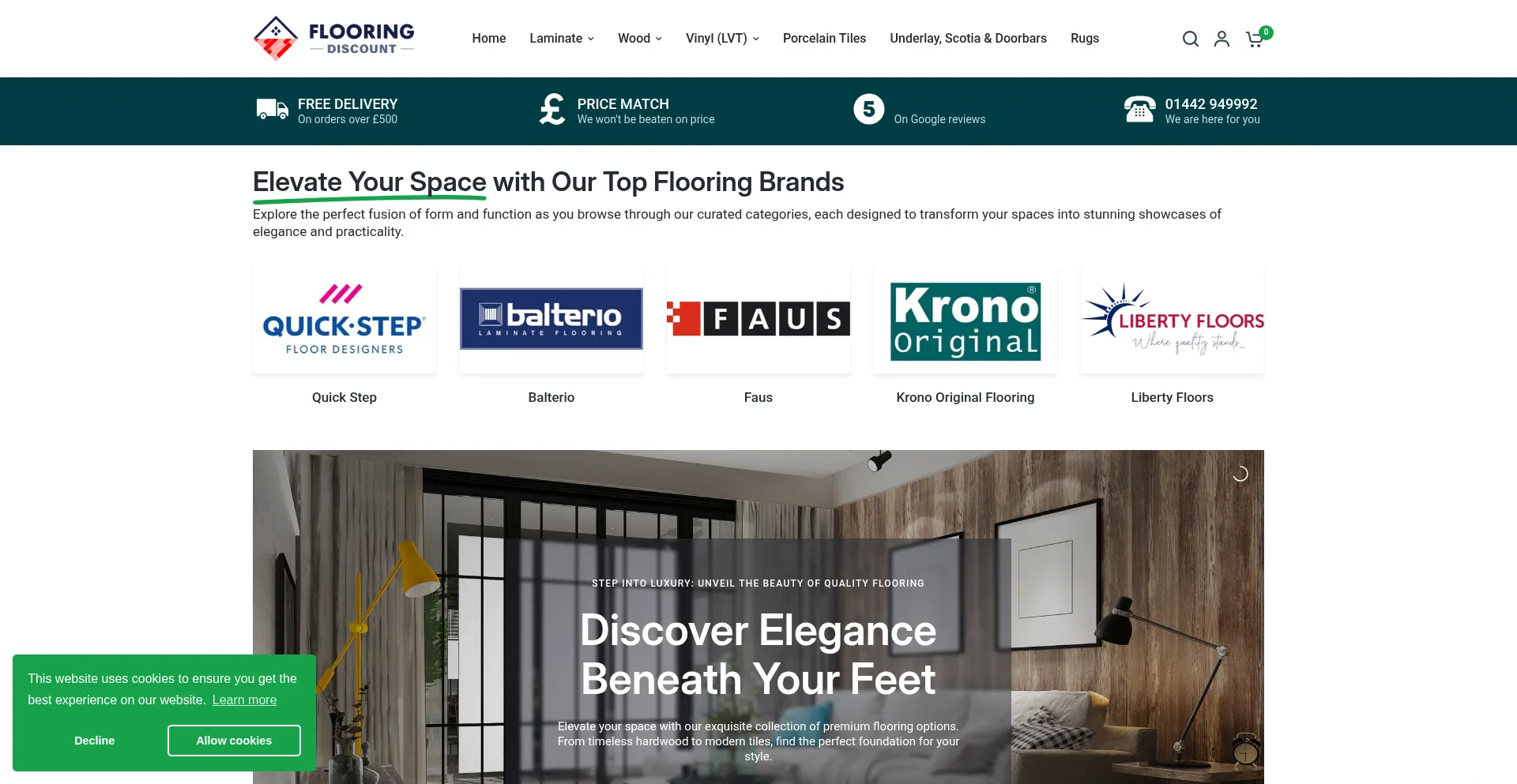 The website implements cookie consent mechanisms in compliance with privacy regulations such as GDPR or CCPA. This demonstrates that flooringdiscount.co.uk adheres to data protection standards and provides users with control over personal data collection practices.