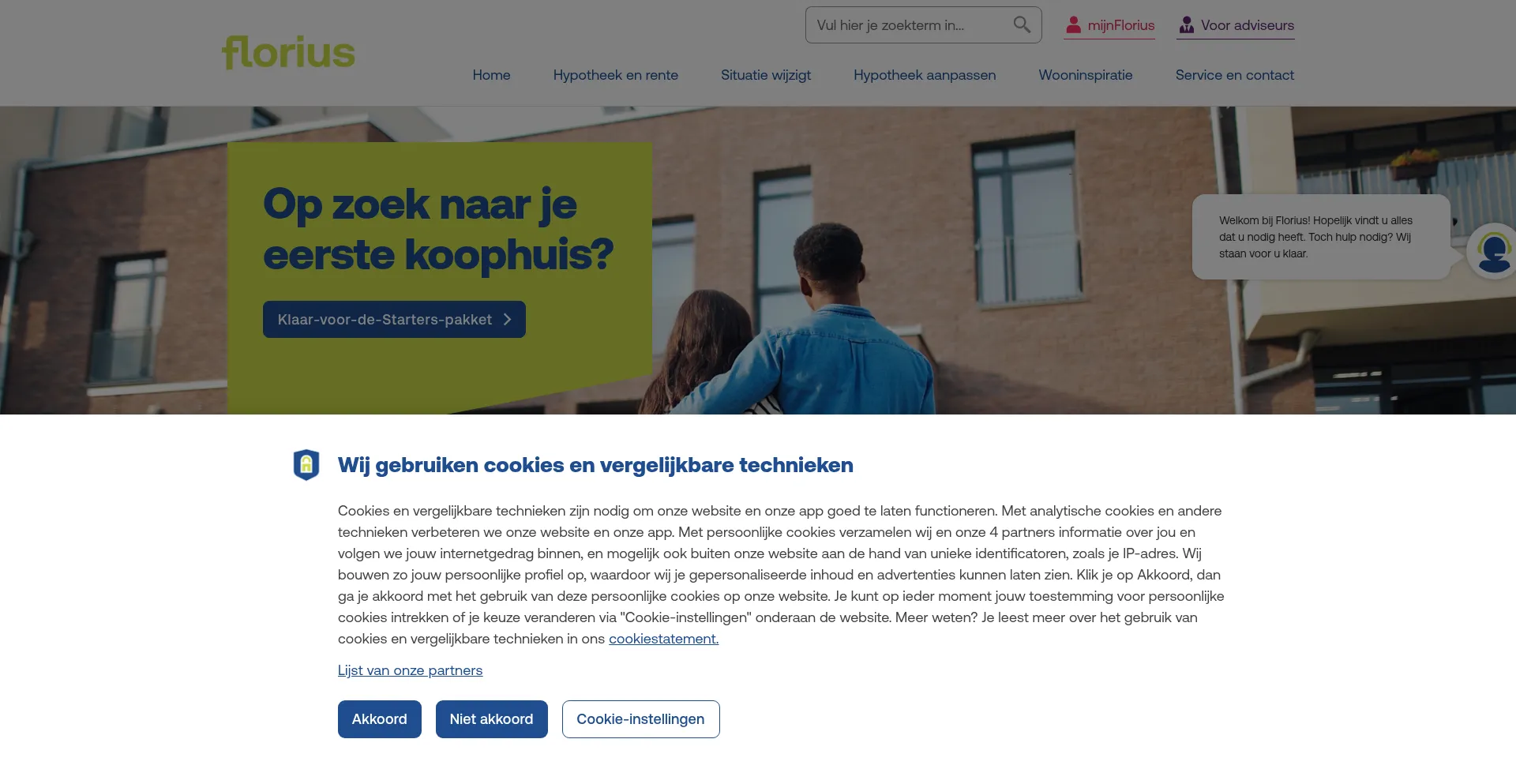 The website implements cookie consent mechanisms in compliance with privacy regulations such as GDPR or CCPA. This demonstrates that florius.nl adheres to data protection standards and provides users with control over personal data collection practices.