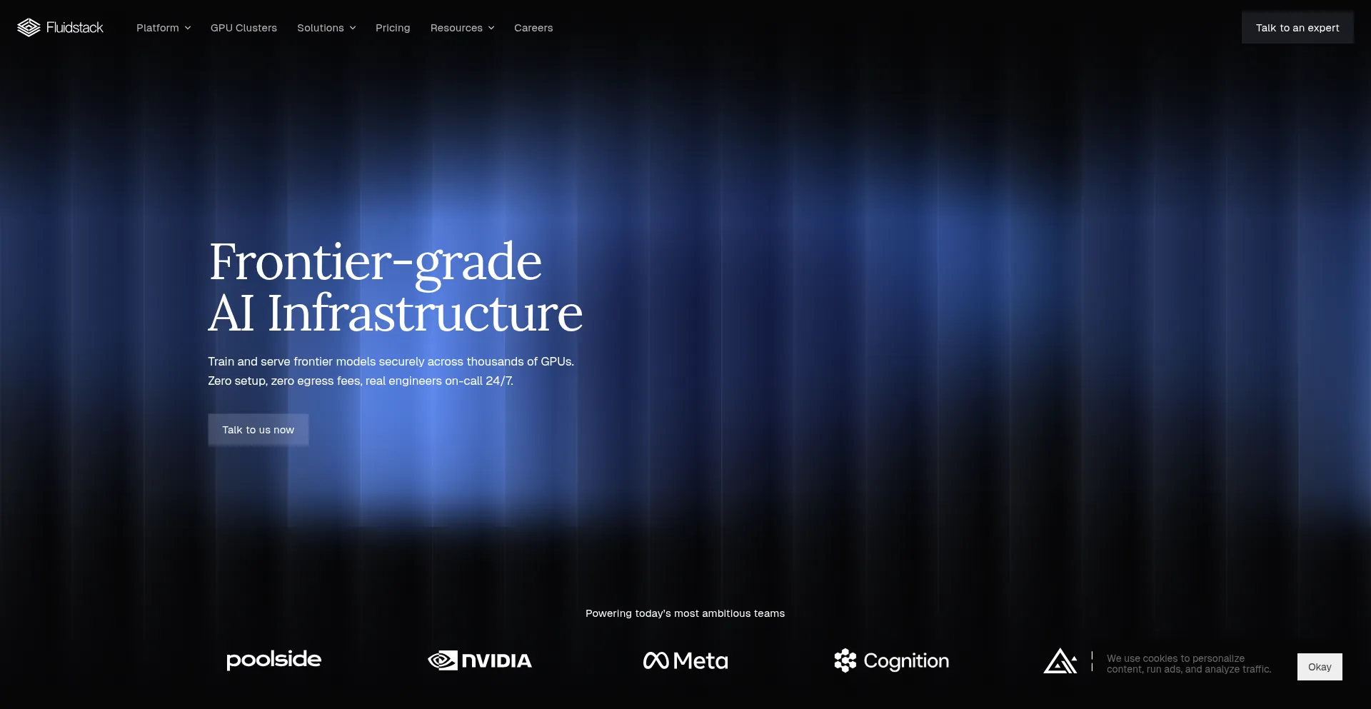 The website implements cookie consent mechanisms in compliance with privacy regulations such as GDPR or CCPA. This demonstrates that fluidstack.io adheres to data protection standards and provides users with control over personal data collection practices.