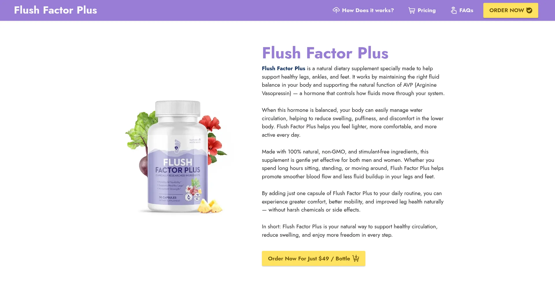Flush Factor Plus supports healthy leg circulation, reduces swelling, and promotes natural fluid balance for lighter, more comfortable legs and feet every day.