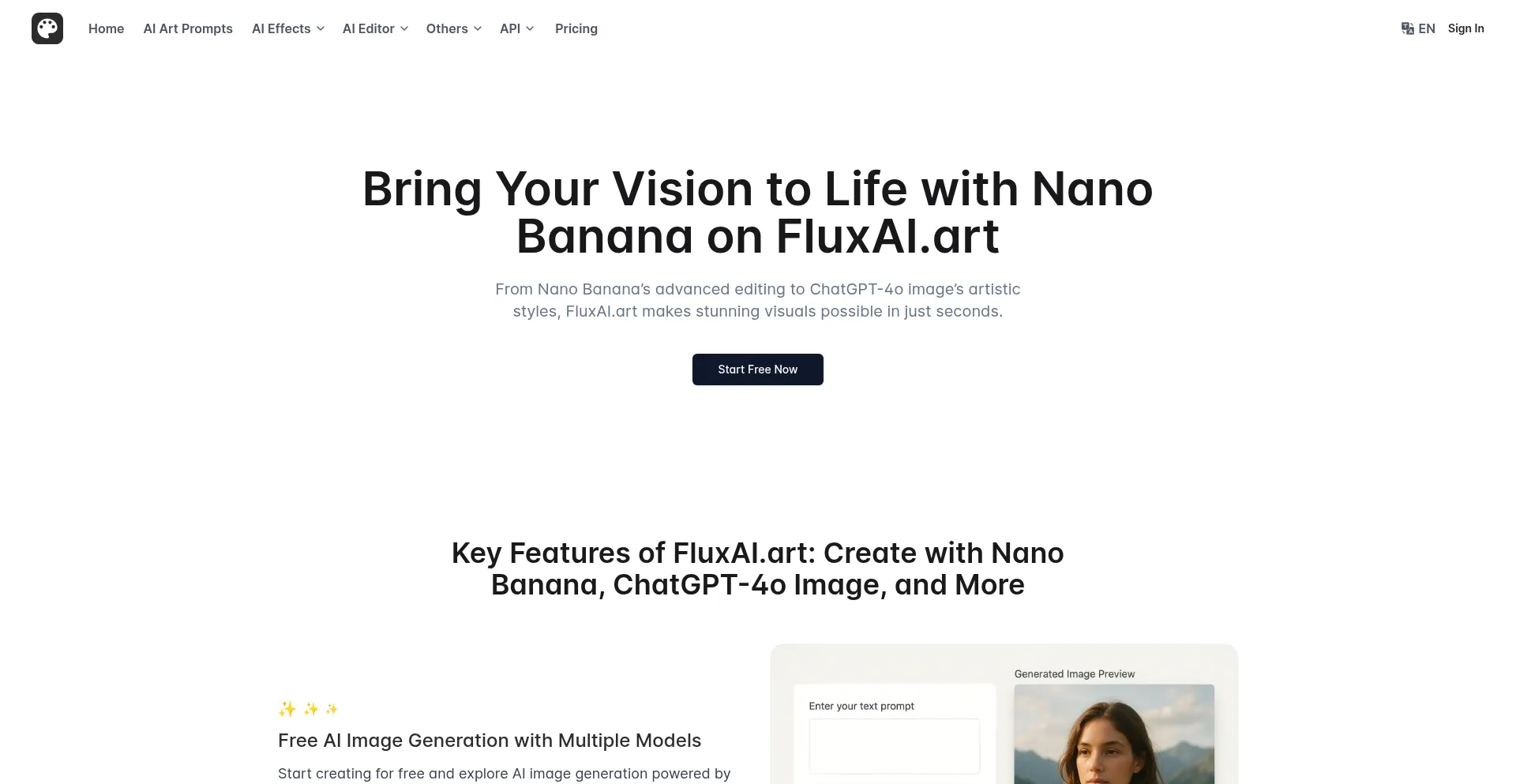 FluxAI.art:Create and Edit Freely with Nano Banana AI Image Generation