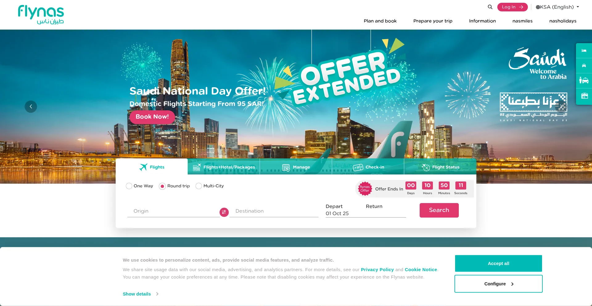The website implements cookie consent mechanisms in compliance with privacy regulations such as GDPR or CCPA. This demonstrates that flynas.com adheres to data protection standards and provides users with control over personal data collection practices.