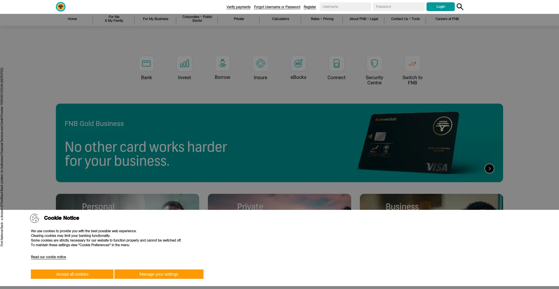 The fnb.co.za website provides financial services including investment management, wealth advisory, or financial planning solutions. Services may encompass portfolio management, investment opportunities, financial consulting, or asset growth strategies for individual and institutional clients.