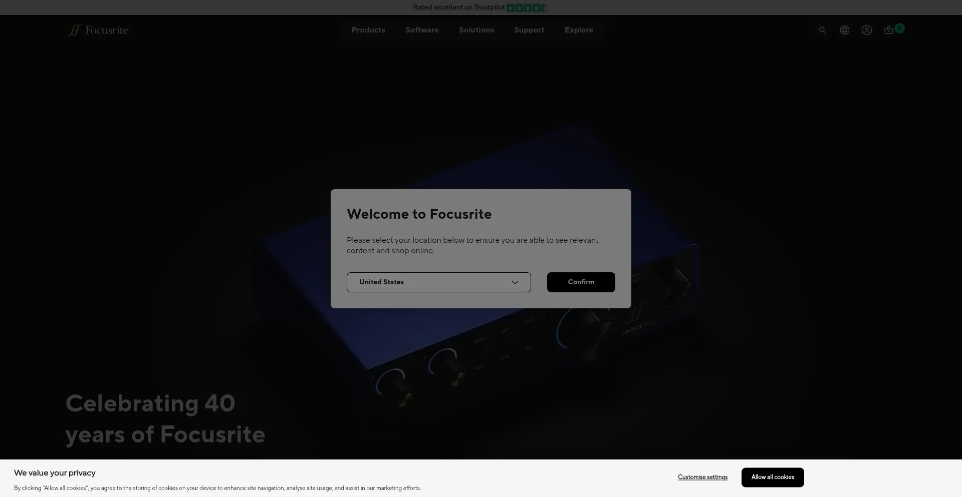 The website implements cookie consent mechanisms in compliance with privacy regulations such as GDPR or CCPA. This demonstrates that focusrite.com adheres to data protection standards and provides users with control over personal data collection practices.