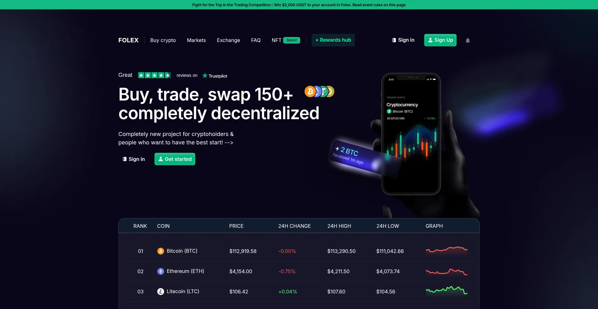 Folex is a secure platform for cryptocurrency transactions, enables users to engage in buying, selling, and trading of Bitcoin, Ethereum, as well as over 1000 other trading pairs.