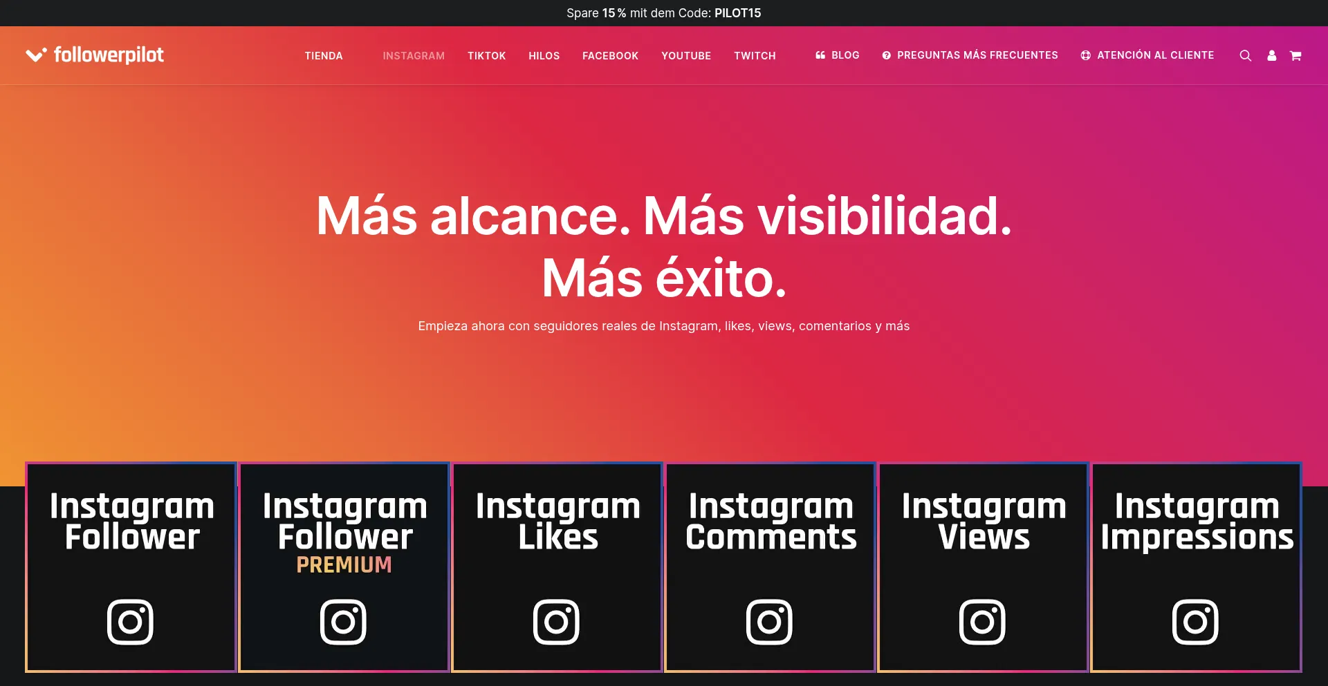 Compra alcance en redes sociales como seguidores, me gusta, visitas para Instagram, TikTok y YouTube en FollowerPilot. ¡Fiable, rápido y asequible!