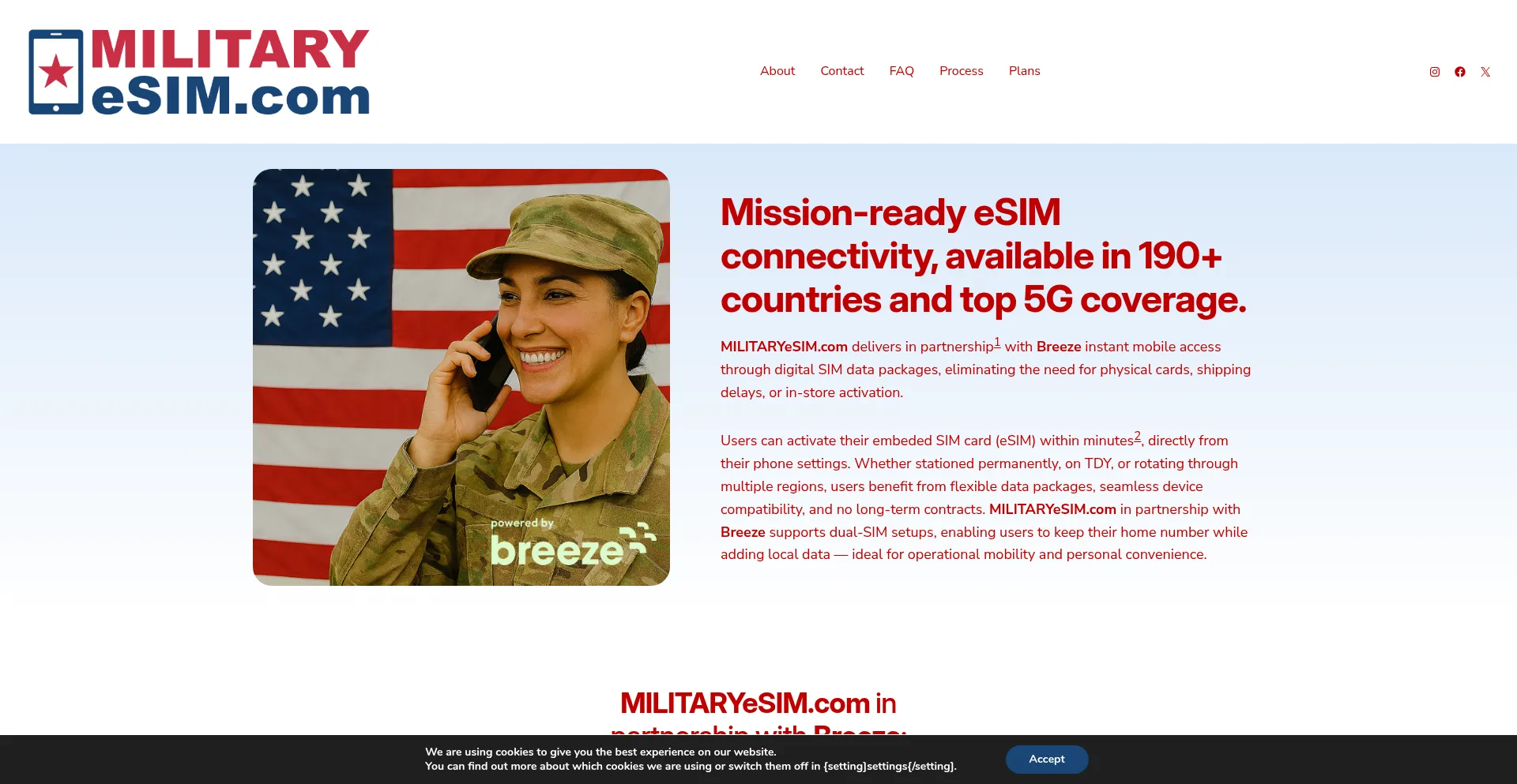 MILITARYeSIM.com delivers in partnership1 with Breeze instant mobile access through digital SIM data packages, eliminating the need for physical cards, shipping delays, or in-st...