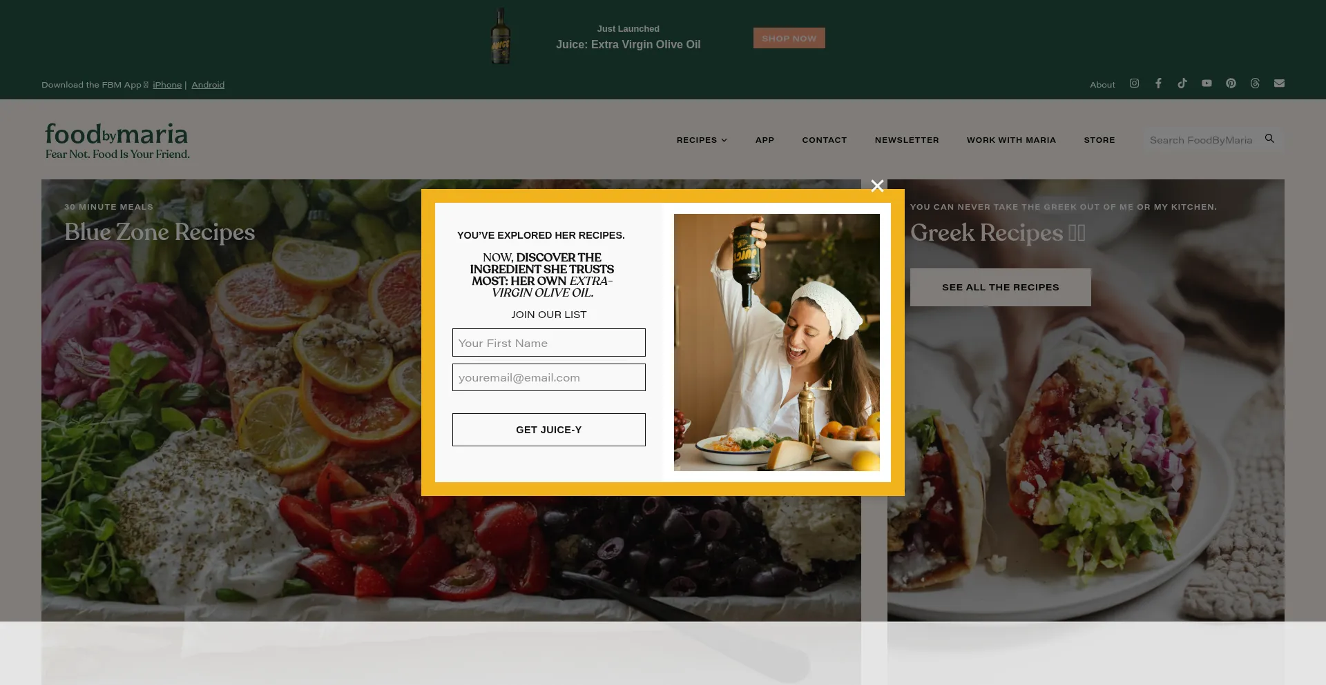 The foodbymaria.com website uses Google Tag Manager to add and update tracking tags on its website.