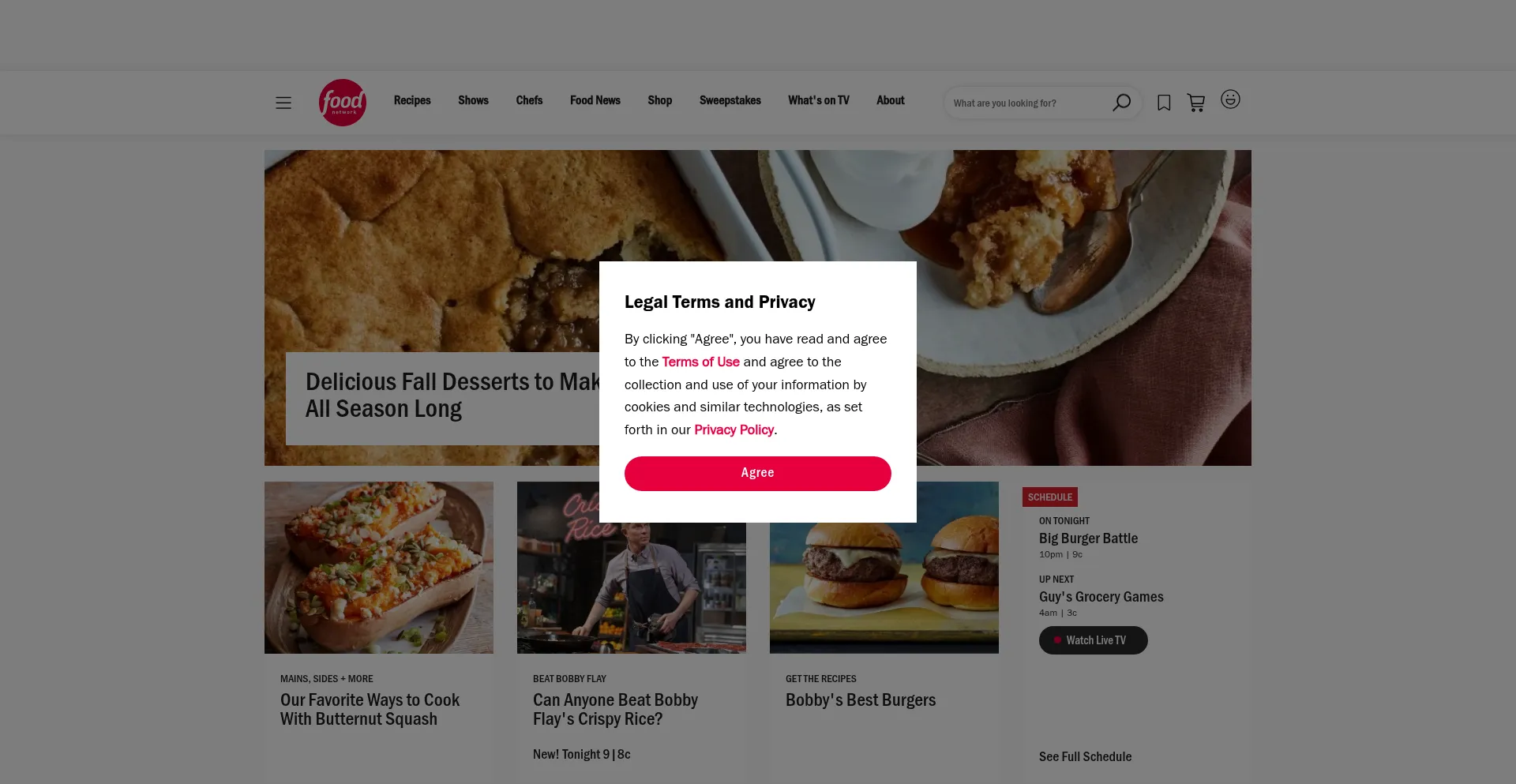 The website implements cookie consent mechanisms in compliance with privacy regulations such as GDPR or CCPA. This demonstrates that foodnetwork.com adheres to data protection standards and provides users with control over personal data collection practices.
