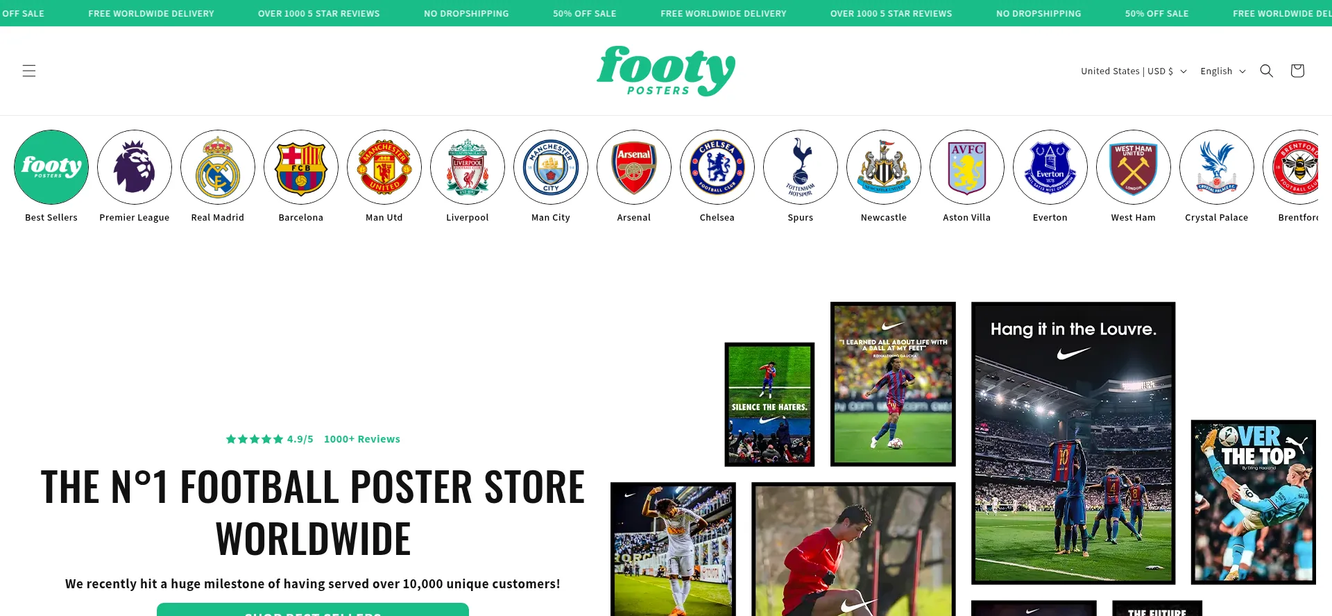 Our analyzer determines that website footyposters.com is using Shopify CMS. Shopify is a popular e-commerce platform, powering around 4.4% of websites globally.