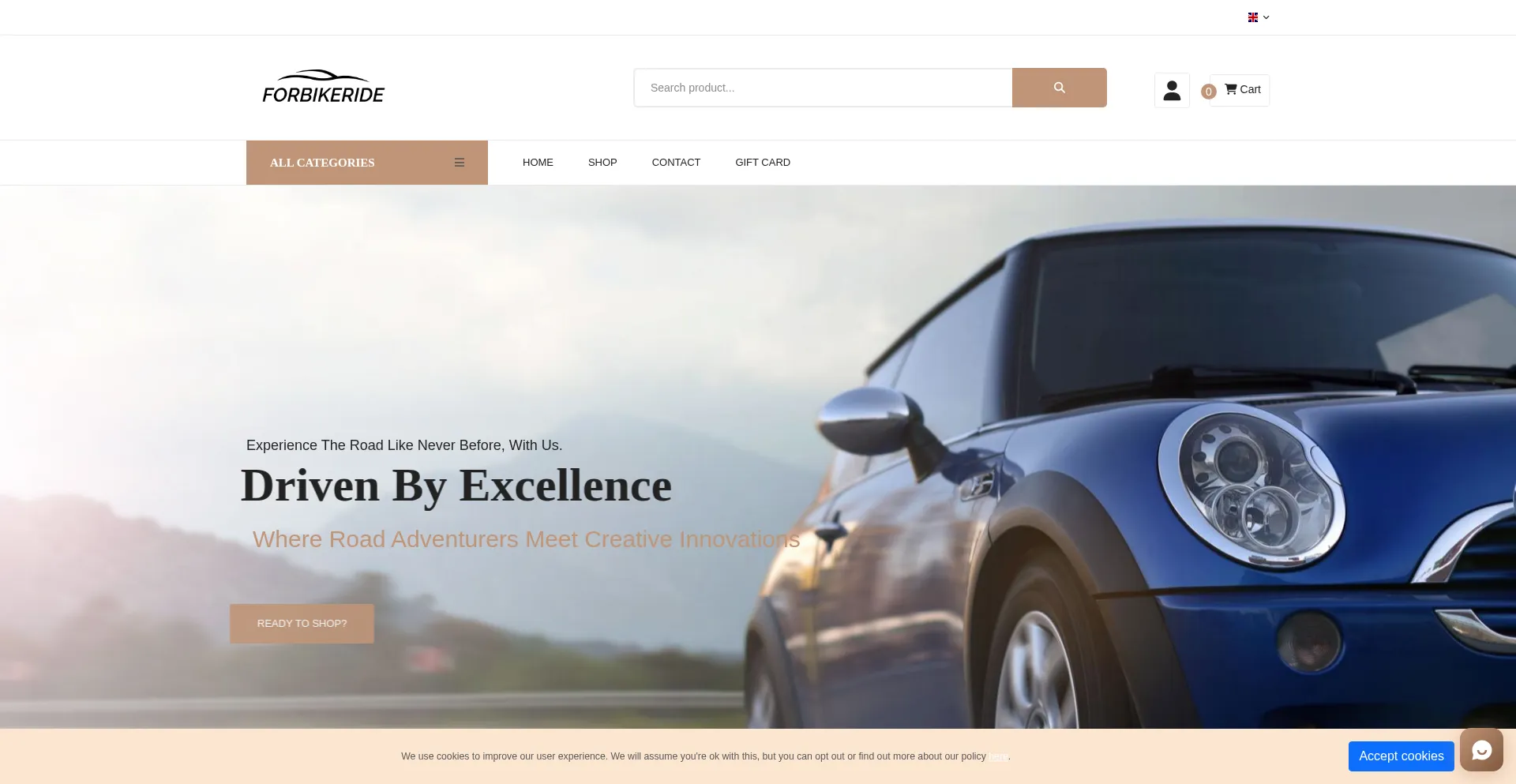Analysis indicates that forbikeride.com operates as an e-commerce platform facilitating online transactions for goods or services. The website implements shopping cart functionality, payment processing systems, and product catalog features typical of commercial retail operations.
