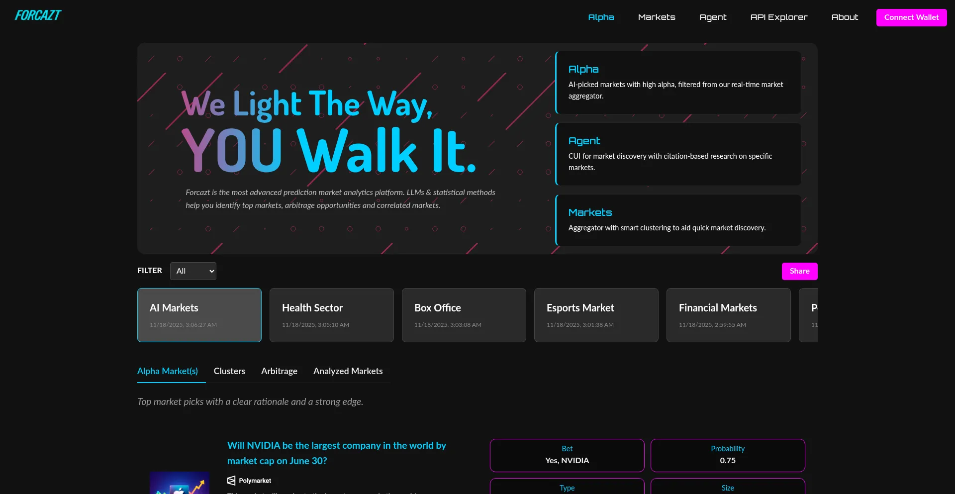 Forcazt is the most advanced prediction market analytics platform.