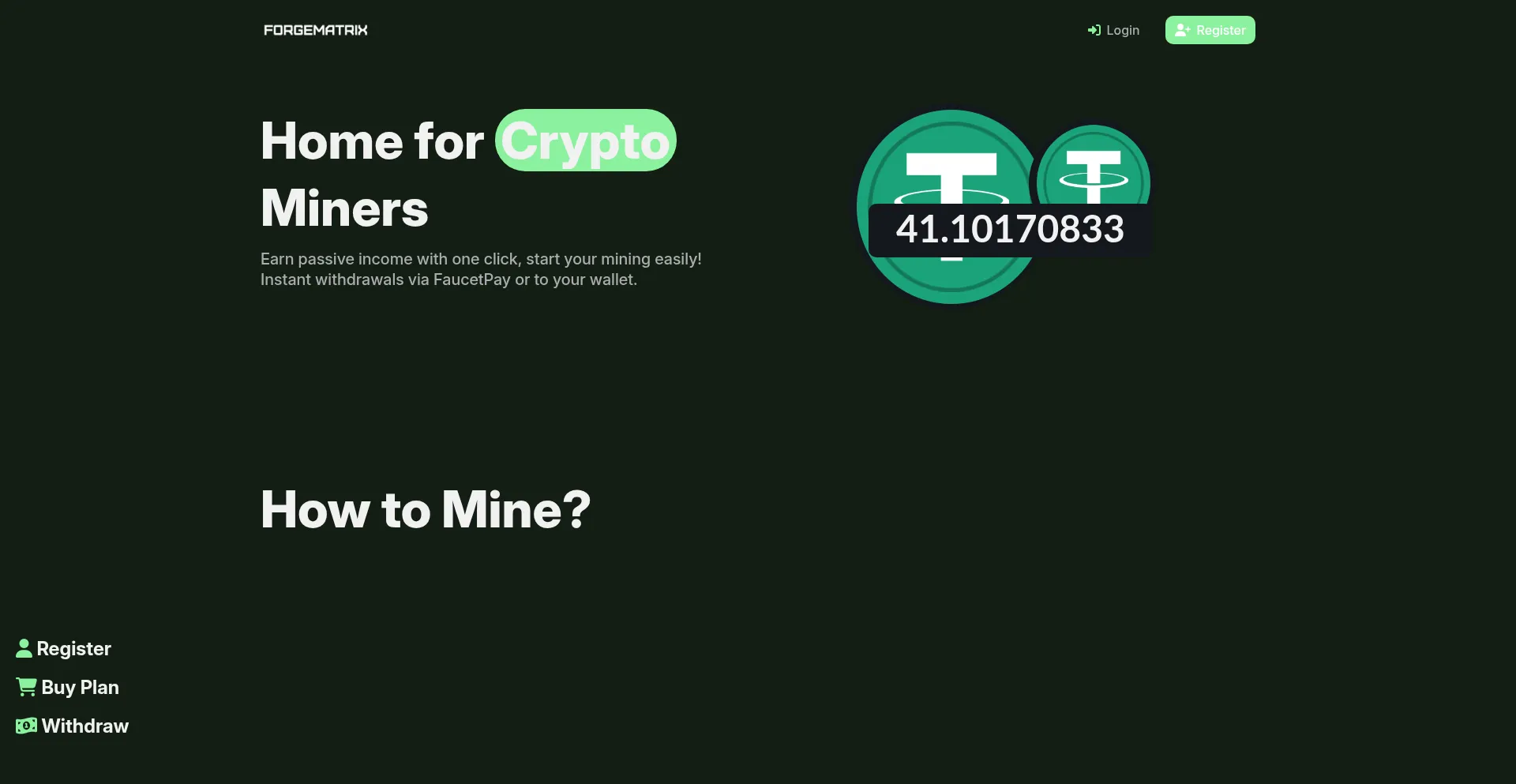 The forgematrix.io probably offers cloud mining services or cryptocurrency mining investments. Some platforms provide legitimate mining rental services, while others may use fake mining dashboards to display virtual earnings that cannot be withdrawn.