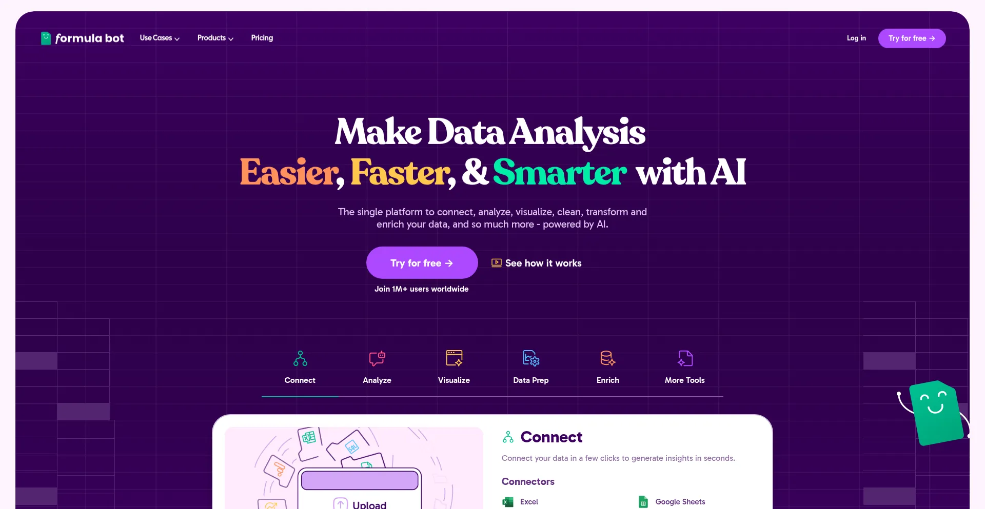 AI Data Analysis: Analyze your Excel & more. The single platform to analyze, visualize, transform, clean and enrich your data, and so much more.