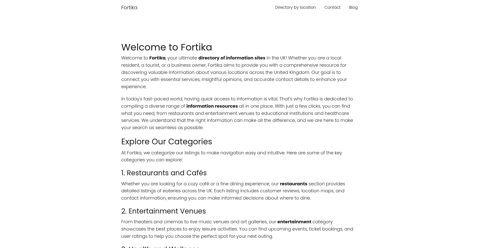 Fortika - Directory of information sites in the UK. Opinions, location and contact